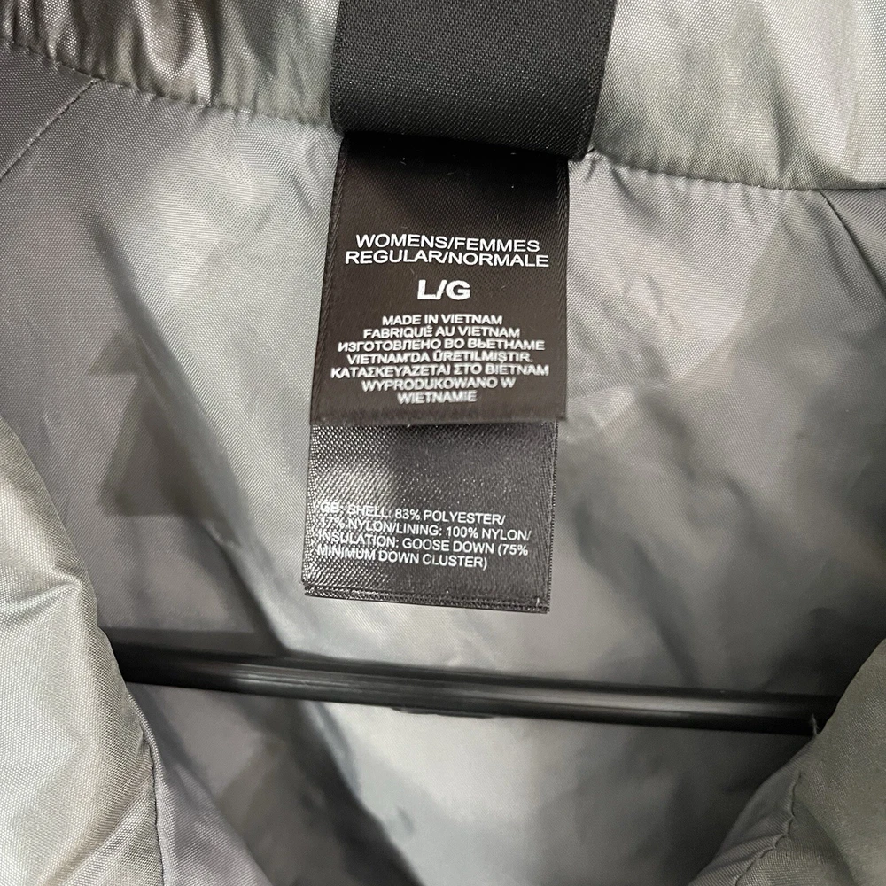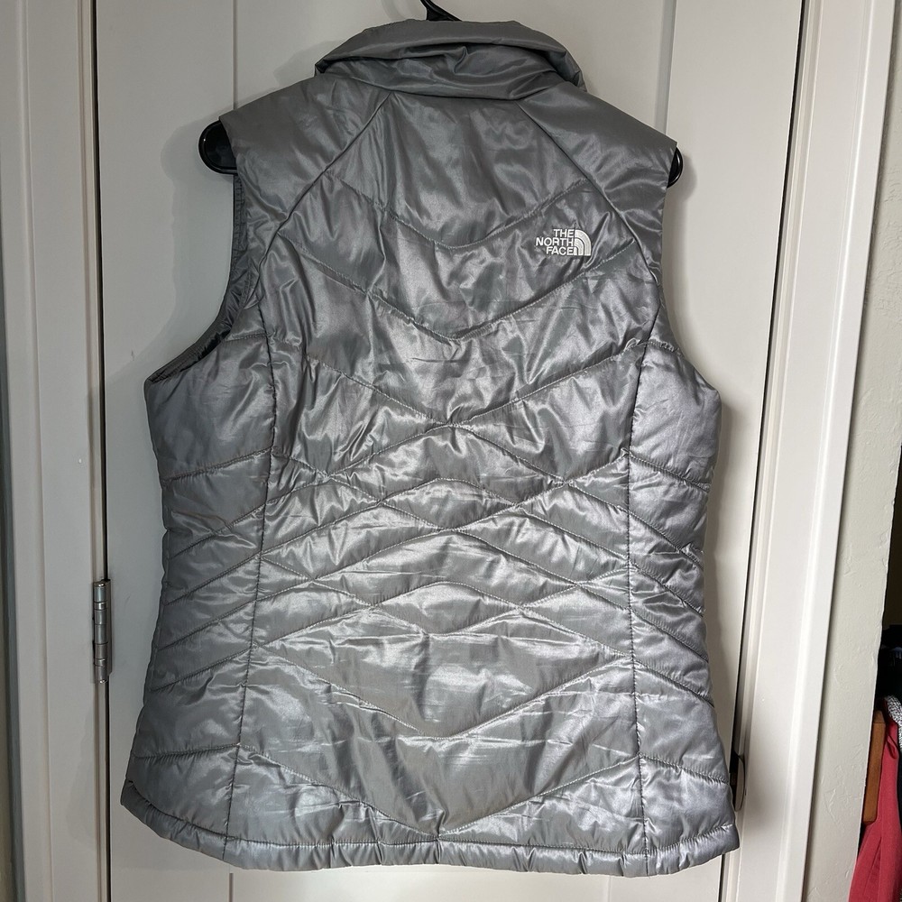 Size:LOuter Shell Material:PolyesterTheme:MetalBrand:The North FaceColor:GrayInsulation Material:DownStyle:Basic JacketDepartment:WomenType:VestSize Type:RegularFeatures:Full Zip