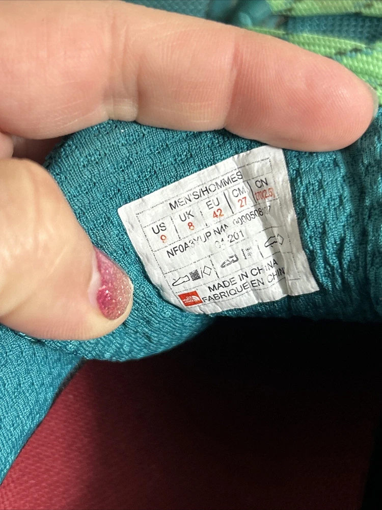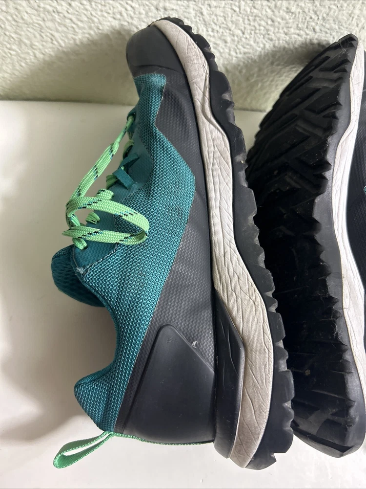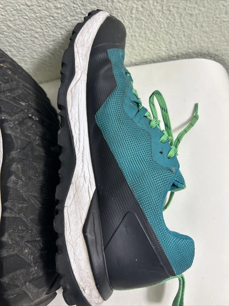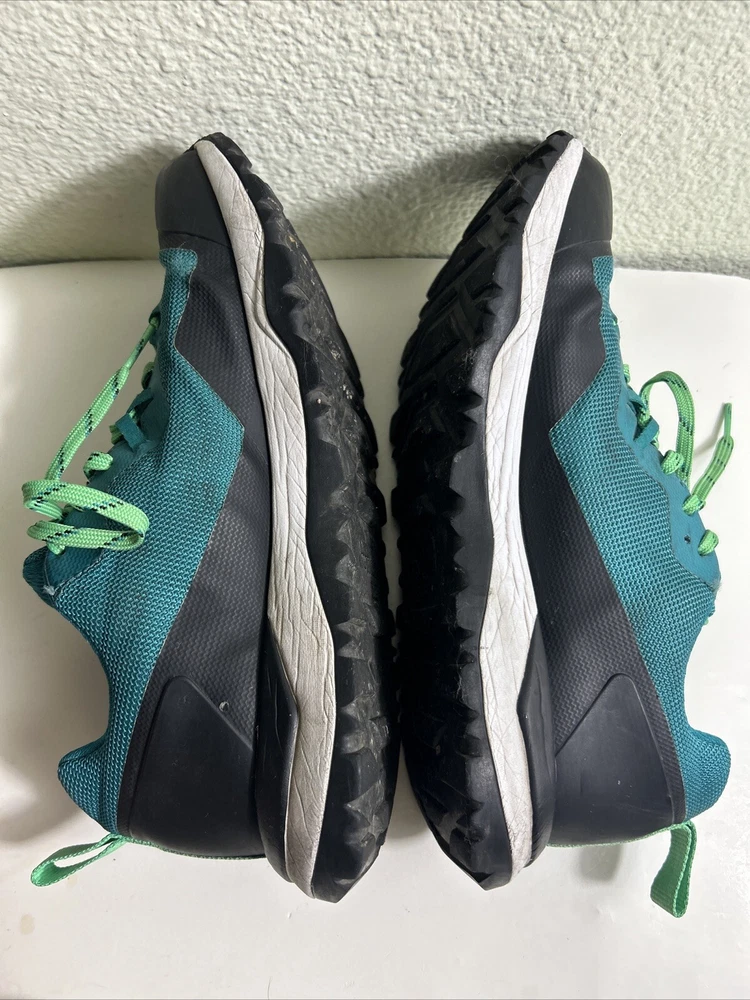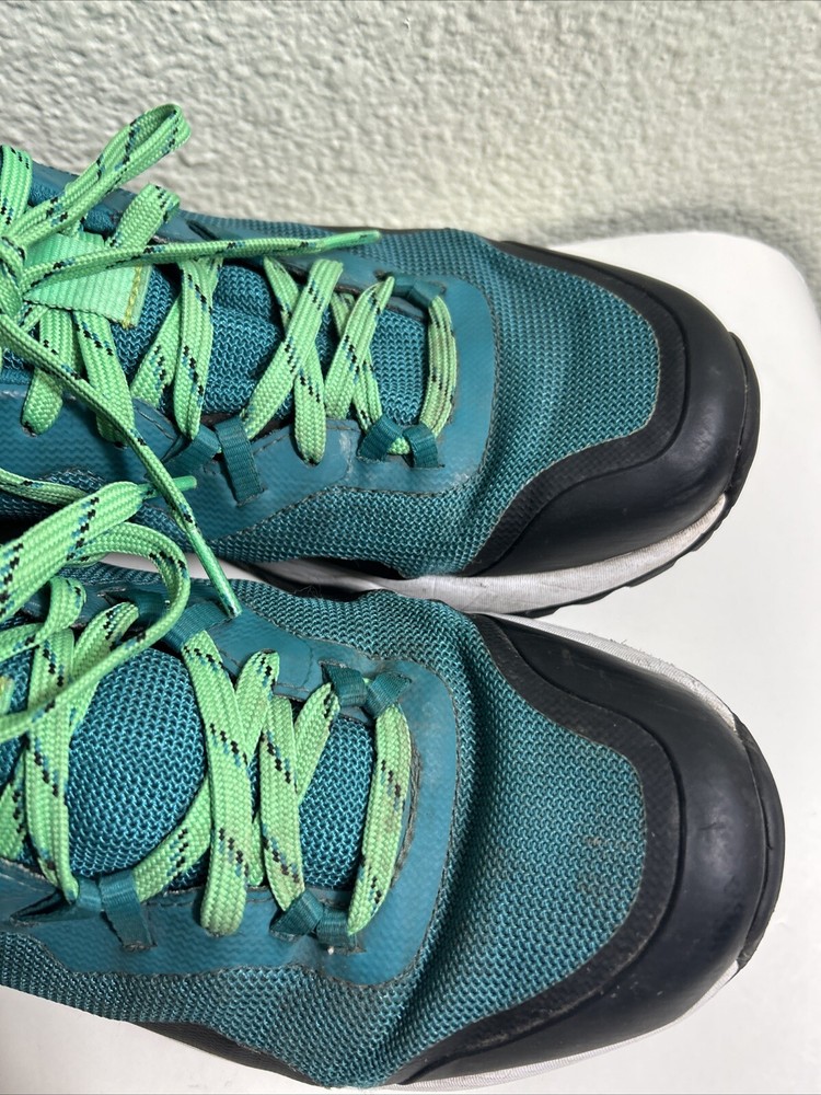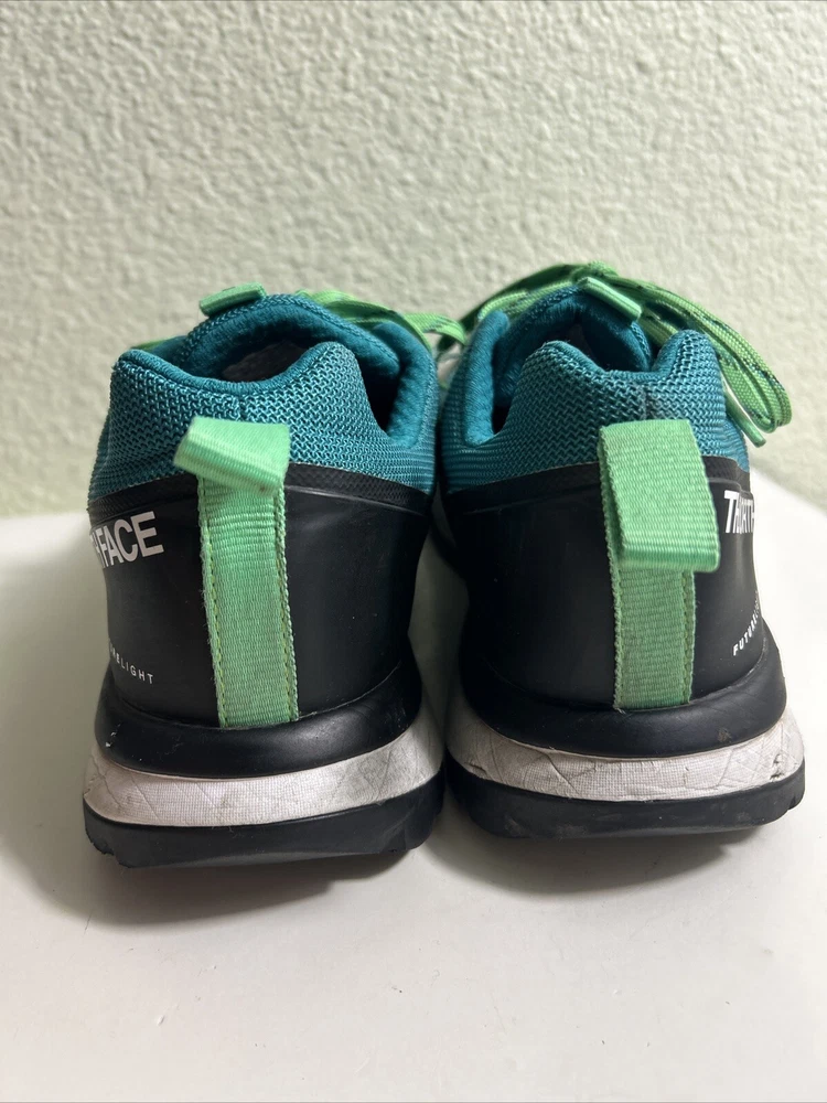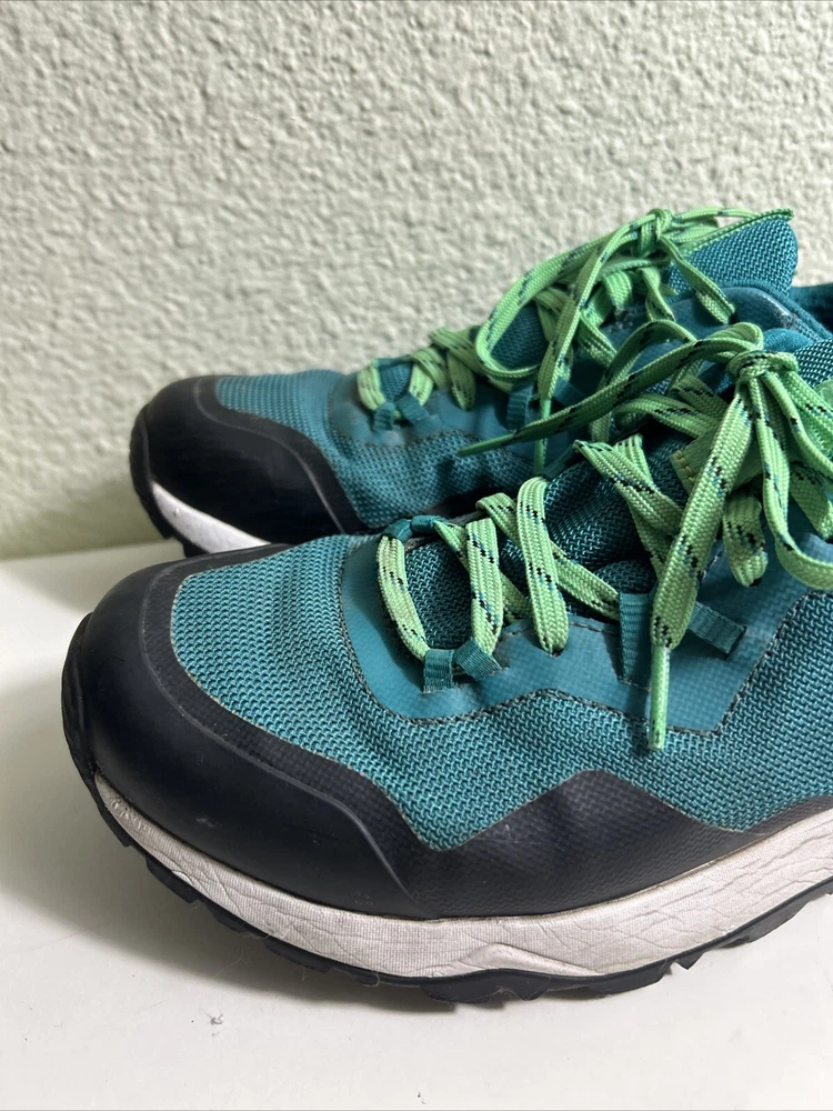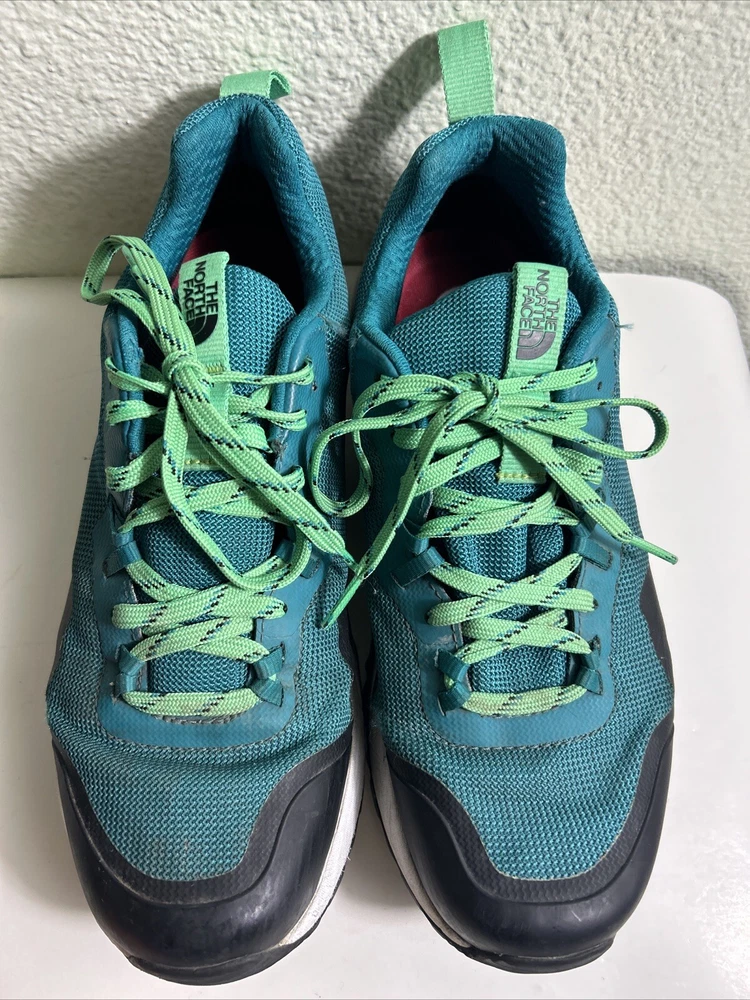 The North Face Activist Futurelight Hiking Sneakers in teal, size 9, feature a low top shoe shaft style with lace-up closure. These athletic shoes are designed for outdoor activities like hiking in the summer, fall, and spring seasons. Made with performance mesh upper material, they are part of The North Face Vectiv product line, perfect for activewear and casual wear.