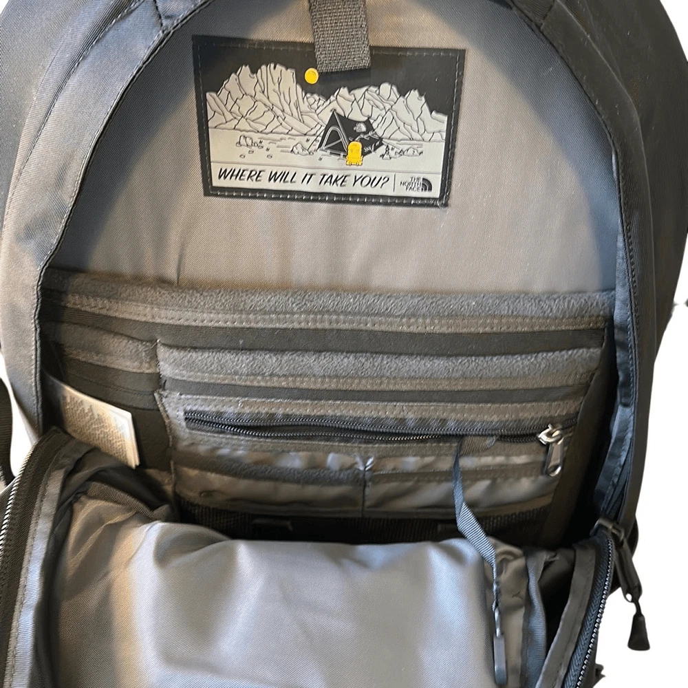 Vintage: No Sport/Activity: Backpacking Features: Collapsible, Divider System, Water Resistant, Padded, Laptop Compartment, Adjustable Size, External Pockets, Hip Belt, Padded Straps, Zip Fastener Season: Summer Color: Black Exterior Color: Black Brand: The North Face Department: Unisex Adults Closure: Zip Type: Strap Buckle Size: One Size
