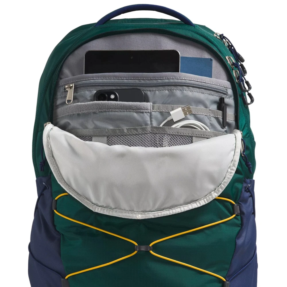 Ideal for both outdoor adventures and daily commutes, this North Face Borealis backpack offers ample storage with a large main compartment and a dedicated, highly protective laptop sleeve. Comfort is a priority with its FlexVent™ suspension system, articulated shoulder straps, and padded top handle, ensuring ease of carry all day long. Stay organized and prepared with multiple pockets, including two external water bottle pockets, a front compartment with secure-zip pockets, and an external fleece-lined pocket for your essentials. FIT & DESIGN Durable water-repellent finish helps keep items in the pack dry and is free of PFC's DESIGN & DETAILS: Updated FlexVent™ suspension system offers comfort and breathability with every carry Stand-up design Articulated shoulder straps bolster comfort Rounded back panel Comfortable stitch lines and soft-touch chemise fabric Large main compartment allows ample storage for books and binders Dedicated, highly protective laptop compartment that fits up to 15” laptops Front compartment has internal organization with secure-zip pockets Padded tablet sleeve in front compartment Two durable external water bottle pockets can easily double as multi-use pockets with quick-draw smartphone access on one side External fleece-lined pocket offers a place to keep your sunglasses, phone or keys U-pull zippers are easy to grab Padded top handle increases comfort Sternum strap complete with a whistle buckle Removable waist belt Bottom compression Side bungee cords allow for compression External bungee-compression system with clips offers more options for organization 360-degree reflectivity enhances visibility FlexVent™ suspension system is certified by the American Chiropractic Association Women-specific version available Brand : The North Face Country of Origin : Imported Style : NF0A52SE Fabric : 210D recycled nylon ripstop; 300D heathered recycled polyester; 600D recycled polyester Bag Style Backpack Dimensions 12” x 6.5” x 19.5” Capacity 28 L Weight 2 lbs. 5 oz. Design Stand-up design | Rounded back panel | Padded top handle | Sternum strap | Whistle buckle | Removable waist belt | External bungee-compression system with clips offers more options for organization Comfort FlexVent™ suspension system offers comfort and breathability | Articulated shoulder straps bolster comfort | Comfortable stitch lines and soft-touch chemise fabric Closure Easy to grab u-pull zippers Compression Bottom compression | Side bungee cords allow for compression Pockets Large main compartment allows ample storage | Front compartment has internal organization with secure-zip pockets | Padded tablet sleeve in front compartment | Two durable external water bottle pockets double as multi-use pockets with quick-draw smartphone access on one side | External fleece-lined pocket offers a place to keep your sunglasses, phone or keys Laptop Pocket Highly protective laptop compartment fits up to 15” laptops Technology PFC-free durable water-repellent finish helps keep items in the pack dry | 360-degree reflectivity enhances visibility Fabric 210D recycled nylon ripstop | 300D heathered recycled polyester | 600D recycled polyester Features Padded Laptop/Tablet Sleeve, Laptop Compatible, Water Bottle Pocket, Sternum Straps or Hip Belt, Front Access Pockets, Whistle Buckle, Padded Top Handle, Padded Back Panel, Padded Straps, Internal Organization We offer FAST AND FREE SHIPPING on all USA orders We usually handle the order within 4 days (often 2-3 days), and it usually takes 3 days for delivery. It means you will receive your order no later than 7 days after payment. We use FedEx, USPS or UPS ground Local pick up is not available at the moment We DO NOT offer shipping option to PO BOX address, warehouse address, freight company address. If you have any questions, feel free to ask. Thank you for visiting!