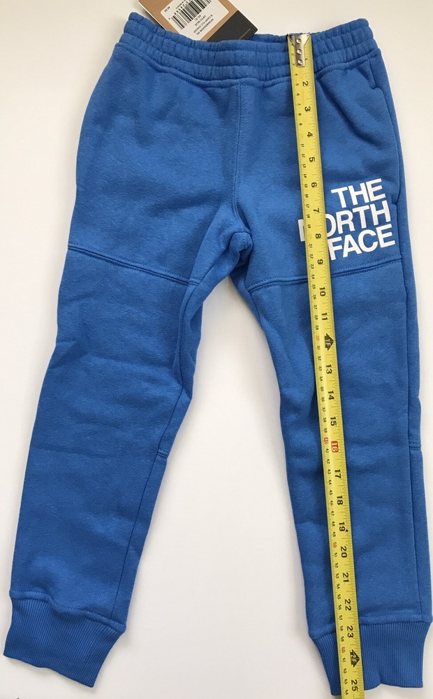 The North Face Boys' Camp Fleece Jogger New with tags. Blue Boy’s XS (6) Encased-elastic waistband with an internal drawcord On-seam hand pockets Rib on cuffs Water based screen printed graphic 75% cotton, 25% polyester Made in Mexico