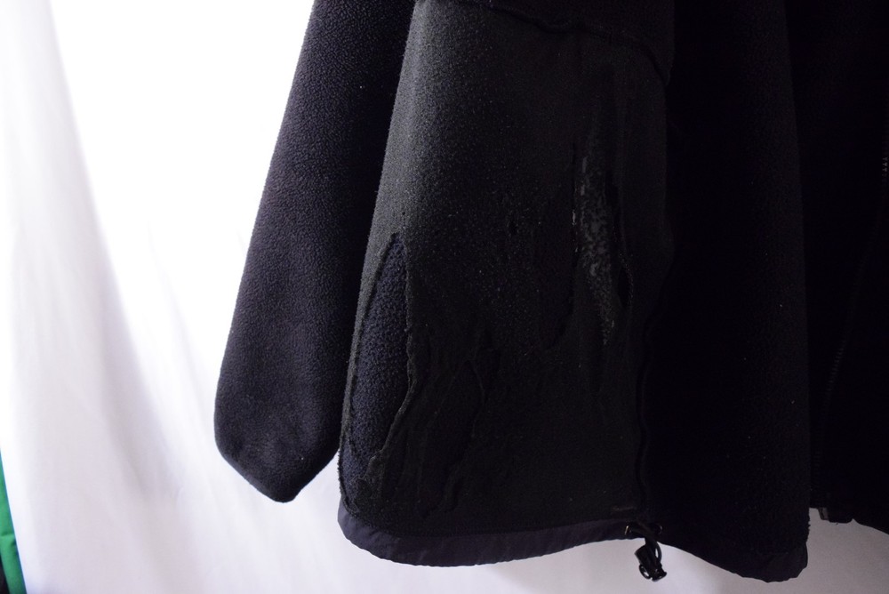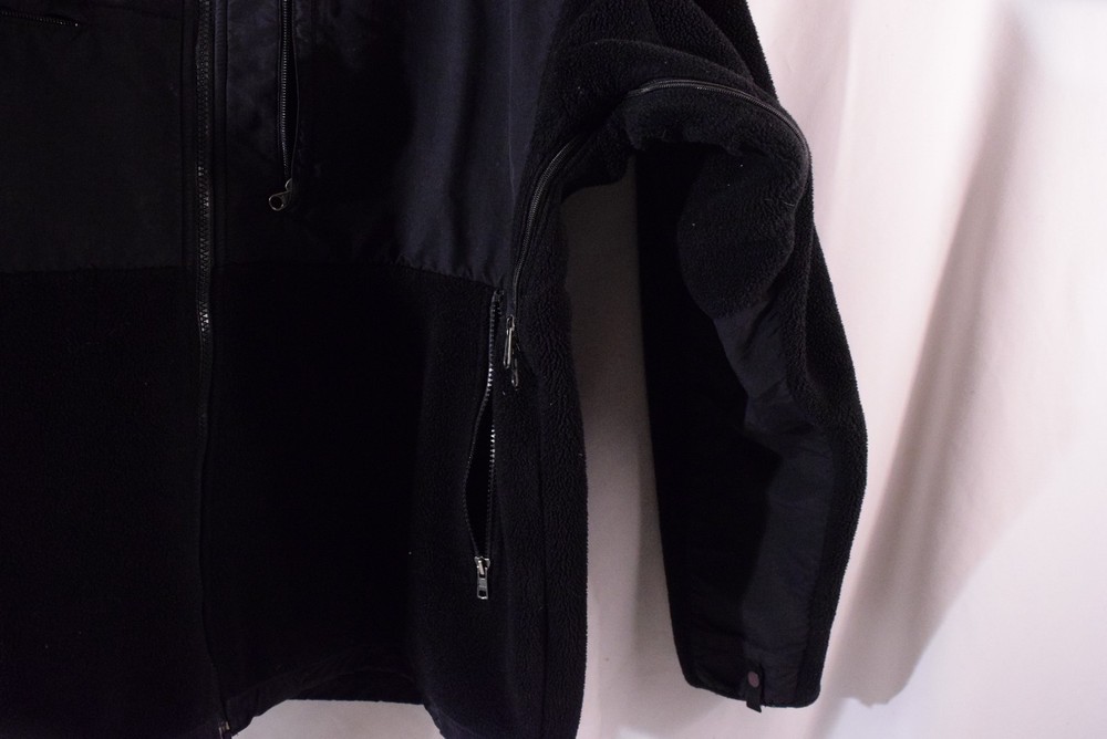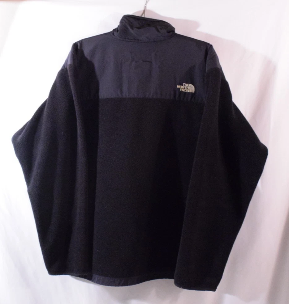 The North Face Denali Jacket in Men's XLarge size is a versatile and stylish outerwear piece perfect for various occasions such as travel, casual wear, and workwear. Made with a durable polyester outer shell and warm fleece lining, this jacket offers 300 warmth weight suitable for all seasons. The full zip closure, stand-up collar, and multiple pockets, including a zippered in-pocket, provide both style and functionality. With a solid black color and easy care instructions (machine washable), this classic and retro-inspired jacket is a must-have for any outdoor enthusiast or hipster looking for a quality piece of gear. **READ THIS, FLAW** The right pocket has a big hole in it. SEE PICTURE!
