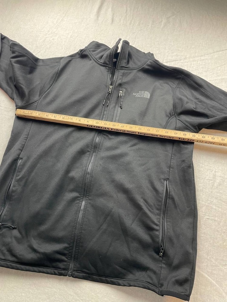 The North Face Full Zip Hoodie Fleece Jacket Mens Large Black Pockets Outdoor Pre-owned, exact items on photos