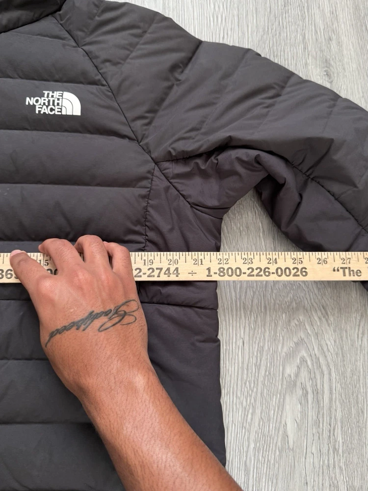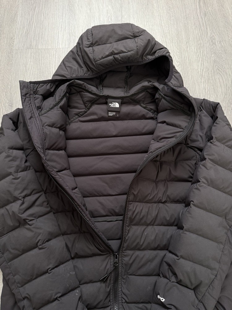 The North Face Hooded Insulated 600-Down Black Puffer Jacket in Men’s Size Large is a stylish and functional outerwear piece perfect for travel and casual occasions. Made with a durable polyester outer shell and lined with cozy nylon, this jacket provides warmth with its 600-down insulation. The hooded collar and quilted design add a classic touch, while the TNF Black color and logo accents give it a sleek and modern look. With its zip closure and machine washable fabric, this jacket is both practical and easy to care for, making it a versatile addition to any wardrobe.