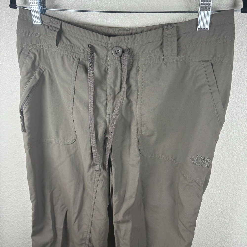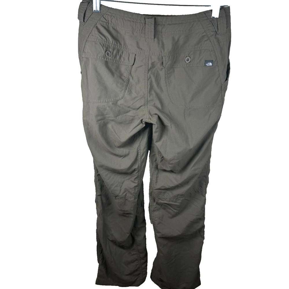 Brand: The NorthFace Size: 4 Features: Convertible Roll up Drawstring Waist Low rise Slant side large pocket Small zipper pocket on one side Cargo Style Lightweight Provides UPF 50+ Sun Protection Two back pockets Condition: Preowned excellent condition. No rips/stains/holes Approximate Measurements pictured in the last photo. Please compare these to similiar items you own to ensure proper fit. Preowned items are cleaned to industry standards. They may have smell of detergent/fabric softener All new items may be stored with preowned items that have been washed or have a scent. New items may have a scent of other items/detergent *Items stored in a non smoking environment but pet friendly home