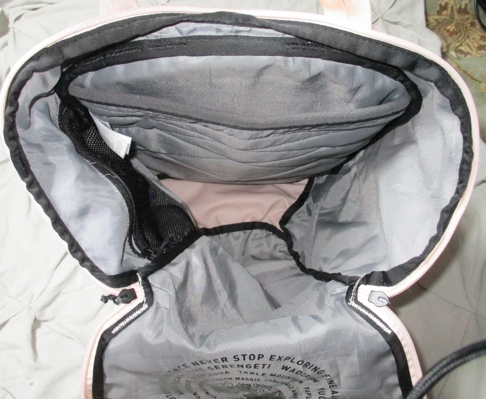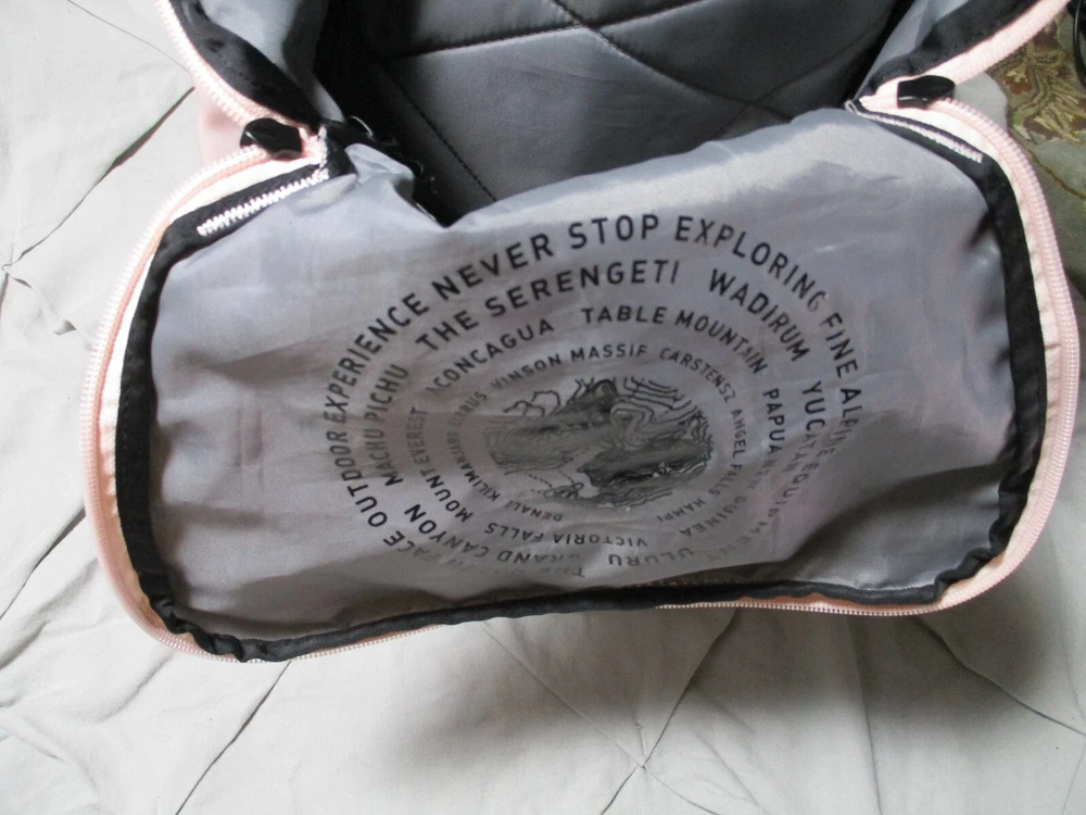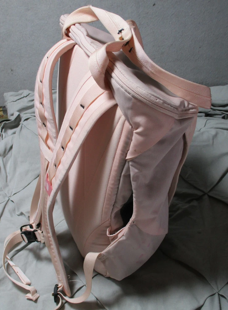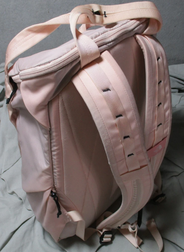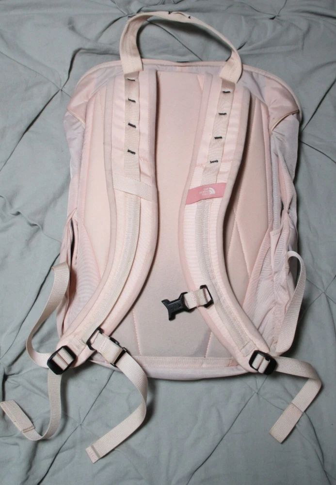 Size: Medium Number of Dividers: 2 Department: Unisex Adults Sport/Activity: Hiking Brand: The North Face Capacity: 20 L Features: Adjustable Size, Ergonomic Handle, External Pockets, Hip Belt, Insulated, Lightweight, Multifunction Compartment, Padded, Padded Straps, Water Resistant Color: Pink