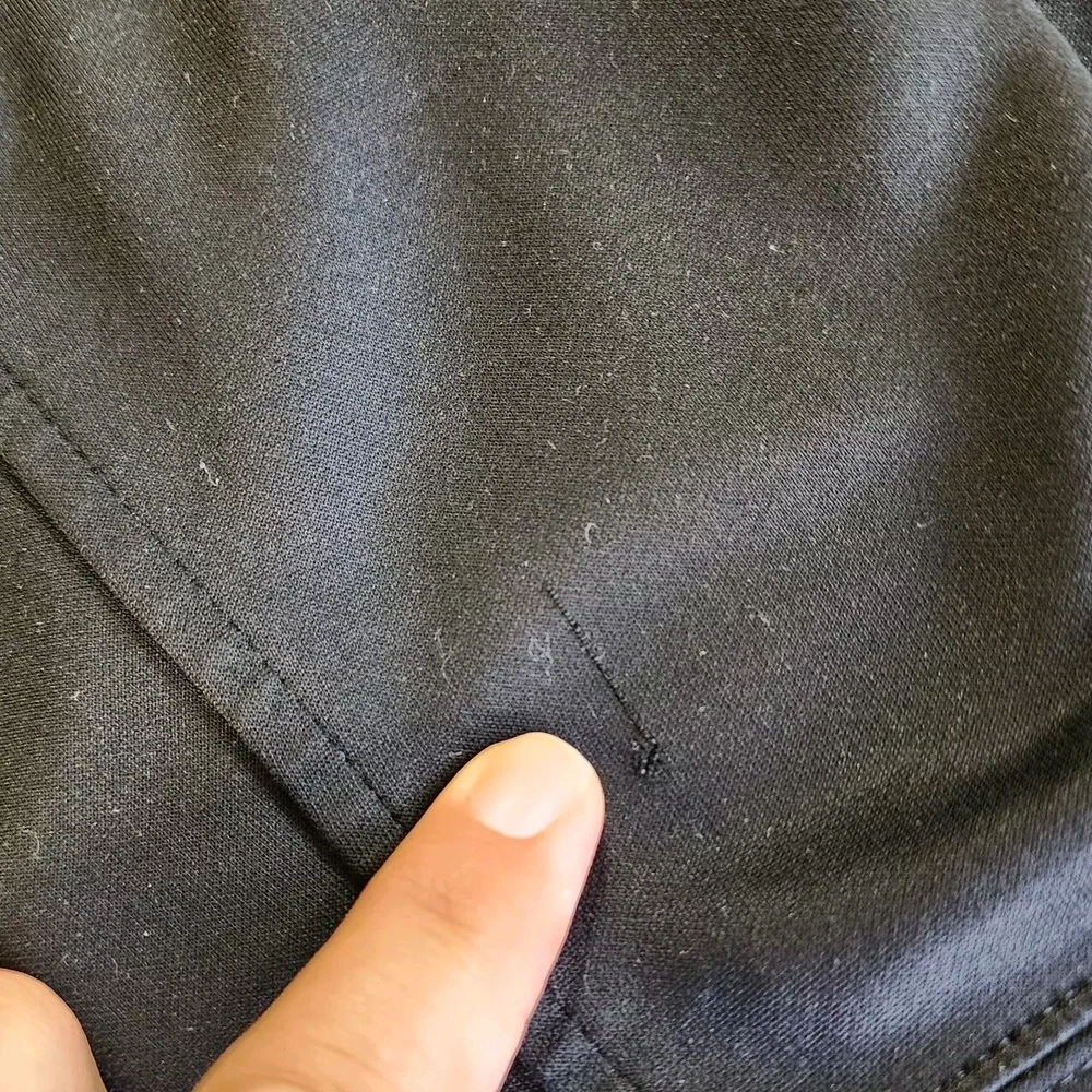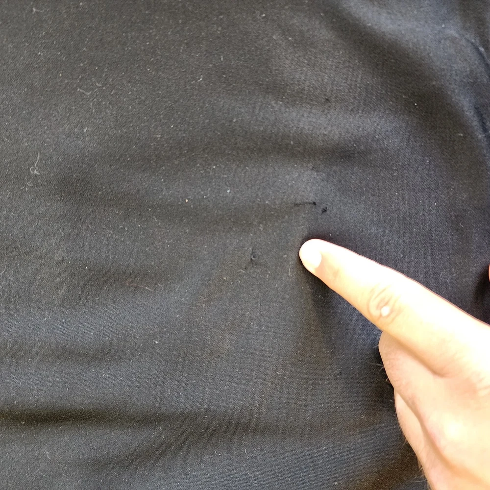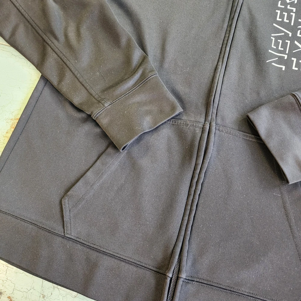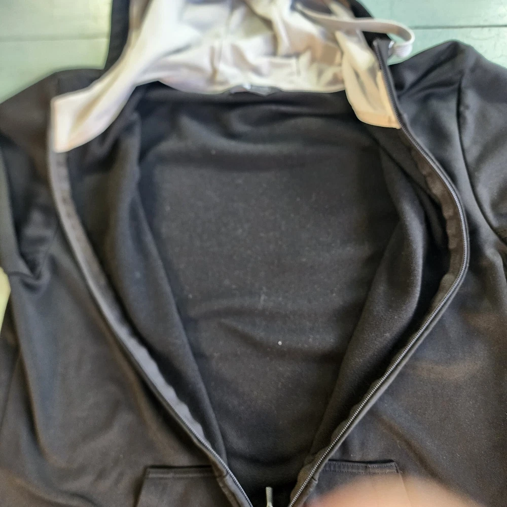 This black North Face jacket for men is a versatile piece suitable for different occasions. It features a long sleeve and a full zip closure, with a hood to keep you warm and protected in different weather conditions. The jacket is made of polyester and has a fleece fabric type, with a solid pattern and black color. The jacket also has different accents, including a zipper and the North Face logo, and comes with pockets to keep your essentials close. It's a great choice for outdoor activities like hiking, skiing, and walking, and is available in size L. Please note that this item has a minor flaw, but it doesn't affect its functionality.