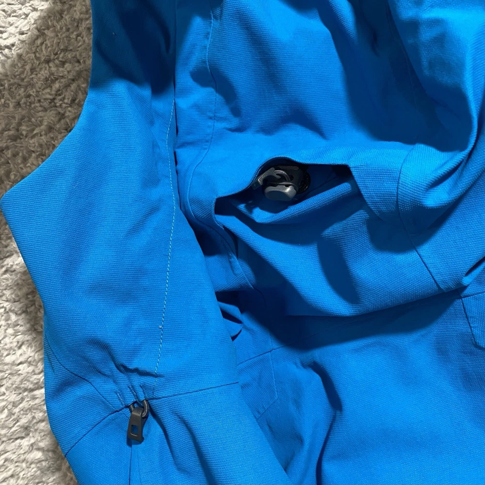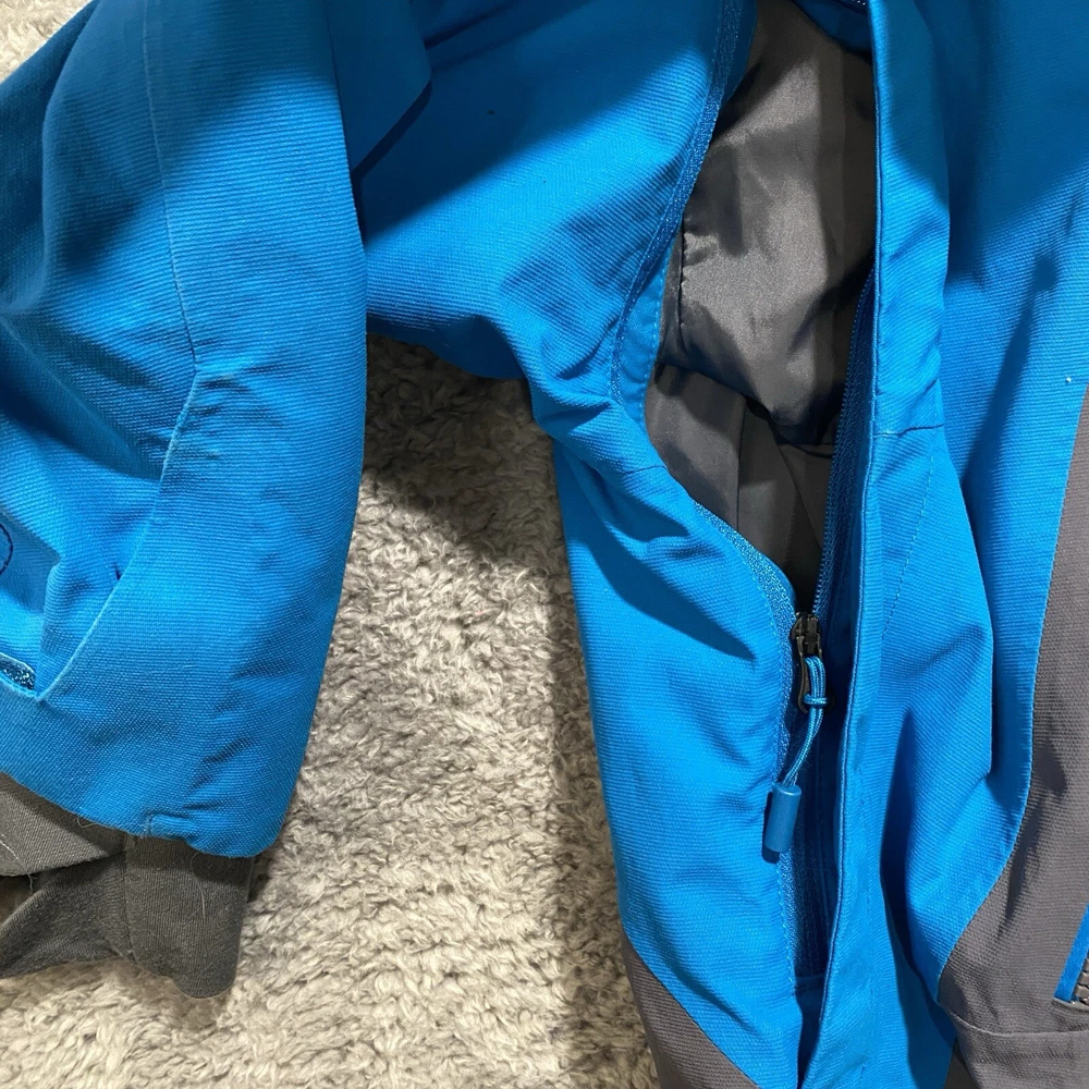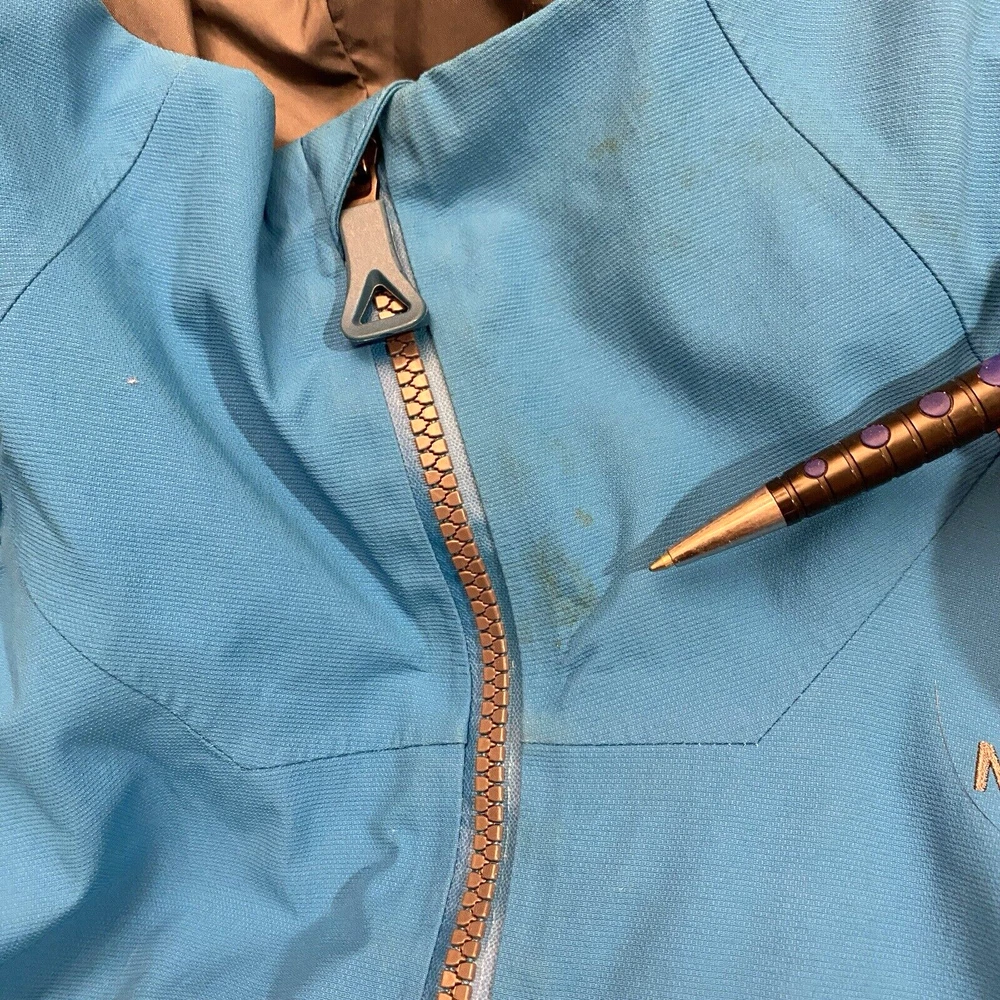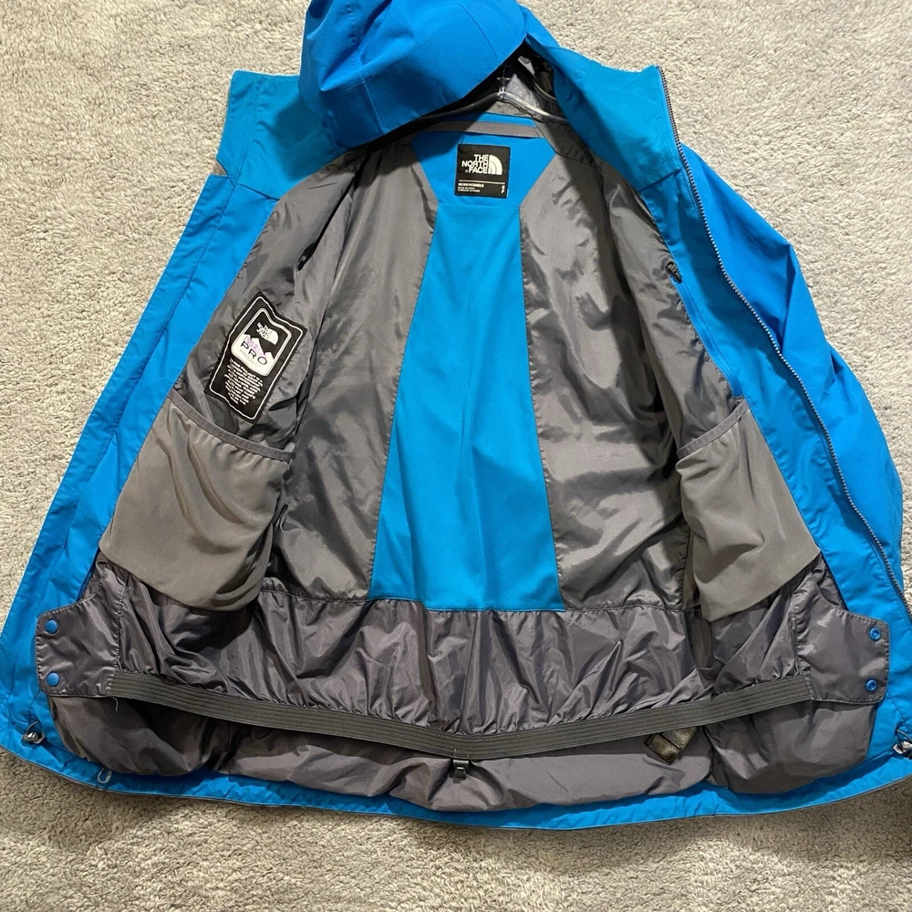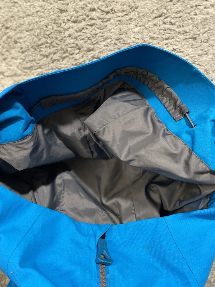 Nice pre-owned. Minor wear and stains on collar. See pictures and description. Name written on inside. T he North Face Jacket Mens Small Goretex Snowboard Ski Coat Blue Very good pre-owned jacket from The North Face. Blue and black in color. See pictures for more details. Slight wear around cuffs/arms. Stains on front of collar. Name written on inside. Underarm to underarm: 20" Collar bottom down back to hem: 30" Features: - Goretex outer shell - U nderarm vents for airflow - P owderskirt - Lots of zippered pockets - Gusseted wrists - Wrist gaiters - Zippered pocket with goggle wipe - Jacket to pants clip - Adjustable hood Ships by USPS Ground Advantage.