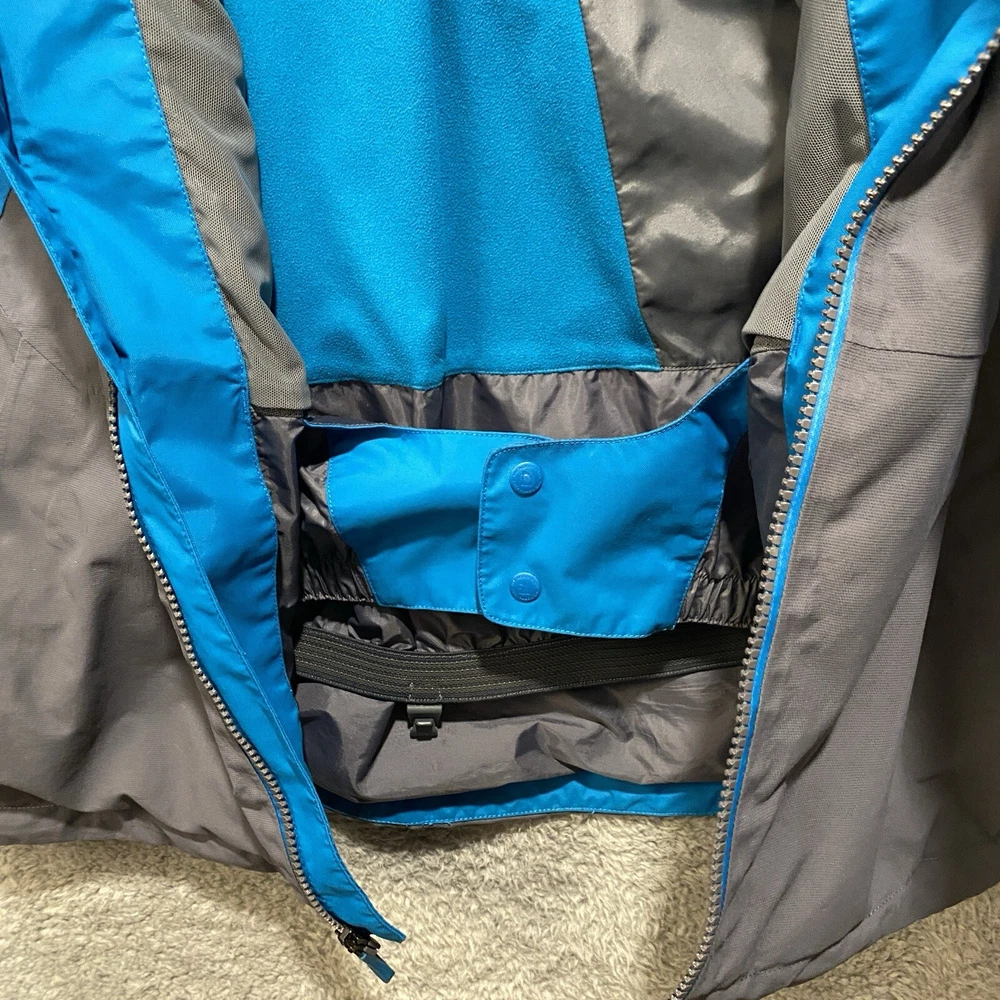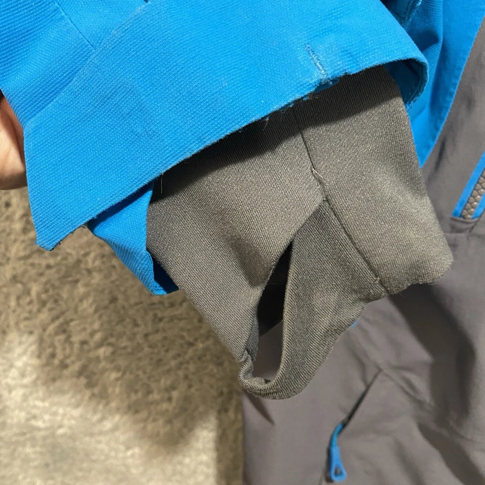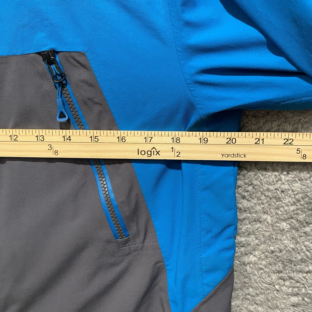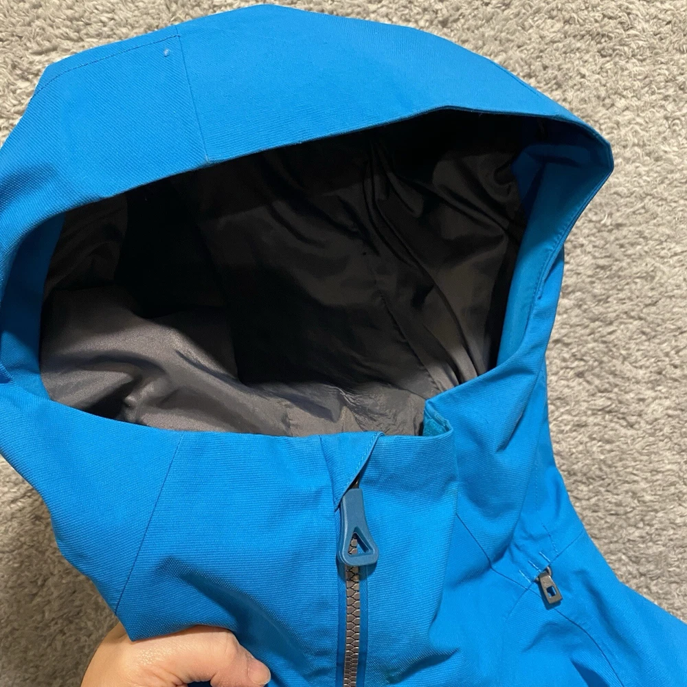 Nice pre-owned. Minor wear and stains on collar. See pictures and description. Name written on inside. T he North Face Jacket Mens Small Goretex Snowboard Ski Coat Blue Very good pre-owned jacket from The North Face. Blue and black in color. See pictures for more details. Slight wear around cuffs/arms. Stains on front of collar. Name written on inside. Underarm to underarm: 20" Collar bottom down back to hem: 30" Features: - Goretex outer shell - U nderarm vents for airflow - P owderskirt - Lots of zippered pockets - Gusseted wrists - Wrist gaiters - Zippered pocket with goggle wipe - Jacket to pants clip - Adjustable hood Ships by USPS Ground Advantage.