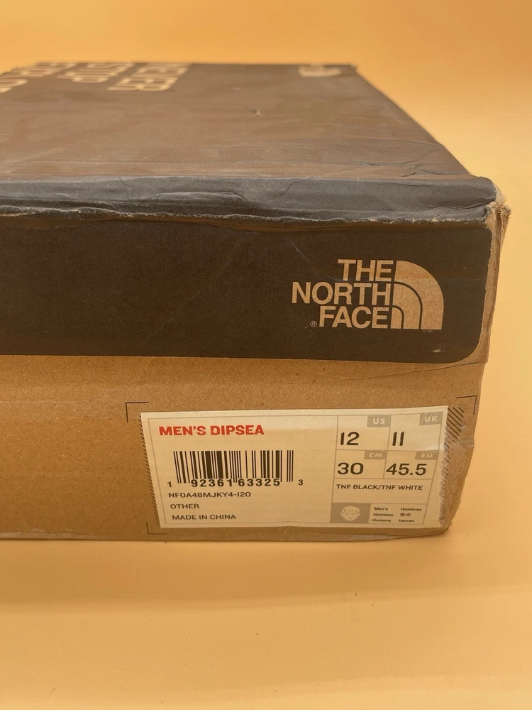 Elevate your casual style with these black and white The North Face Dipsea sneakers. Designed for men, these lace-up athletic shoes are perfect for any occasion, whether you're running errands or hitting the gym. The stylish sneakers boast a colorful theme and are available in UK shoe size 11, US shoe size 12, and EU shoe size 45.5. Crafted by The North Face, a renowned brand in the clothing industry, these sneakers are made to last. The shoes feature a sleek design, making them ideal for the summer, fall, and spring seasons. With a versatile style code NF0A48MJKY4-120, these sneakers are a must-have addition to any sneaker collection. Brand New with Box Defect- It’s Dirty on the Bottom of the shoes (Photo Attached)