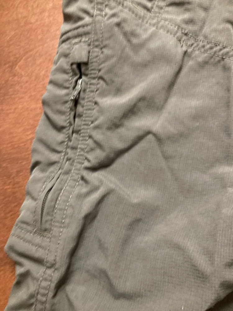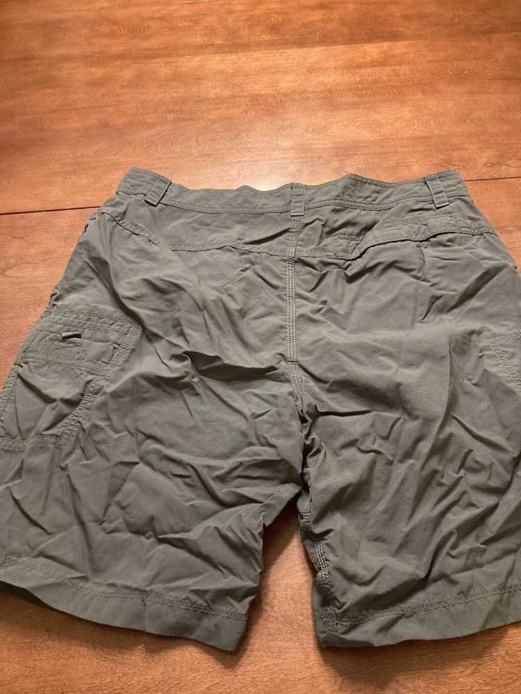 The North Face shorts for men are perfect for outdoor activities such as hiking, camping, and fishing. These shorts feature a stretch fabric that allows for comfortable movement, pockets for storing essentials, and a flat front design. The microfiber fabric is lightweight and easy to care for, making them a great choice for travel or workwear. The dark fabric wash adds to the classic look, while the logo accents provide a touch of style. These shorts are suitable for all seasons, but are ideal for summer, fall, and spring. There is no size tag so the size is estimated and may not be 100% accurate