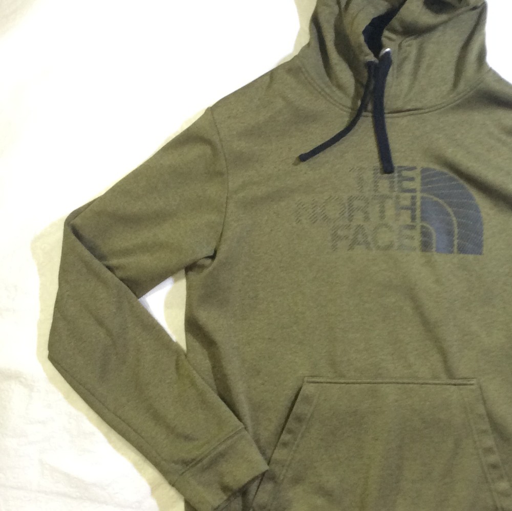 Theme:AmericanColor:GreenPattern:SolidGarment Care:Machine WashableDepartment:MenMaterial:PolyesterCountry/Region of Manufacture:MexicoSize Type:RegularFit:RegularPerformance/Activity:Baseball, Football, RunningSeason:Fall, Spring, Summer, WinterType:CasualBrand:The North FaceSeller Notes:“Great Pre-owned Condition. See Pics for Details and Accurate Measurements. No Flaws.”Fabric Type:Blended FabricSleeve Length:Long SleeveOccasion:Casual, ActivewearVintage:NoClosure:PulloverPersonalization Instructions:NoAccents:LogoStyle:PulloverFeatures:All Seasons, Breathable, Lightweight, HoodedSize:M