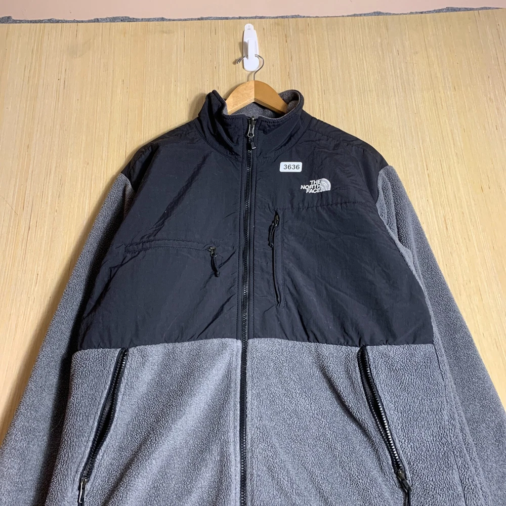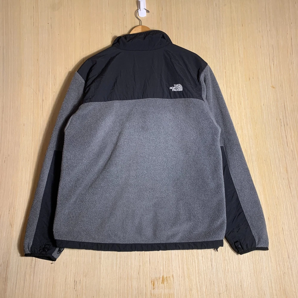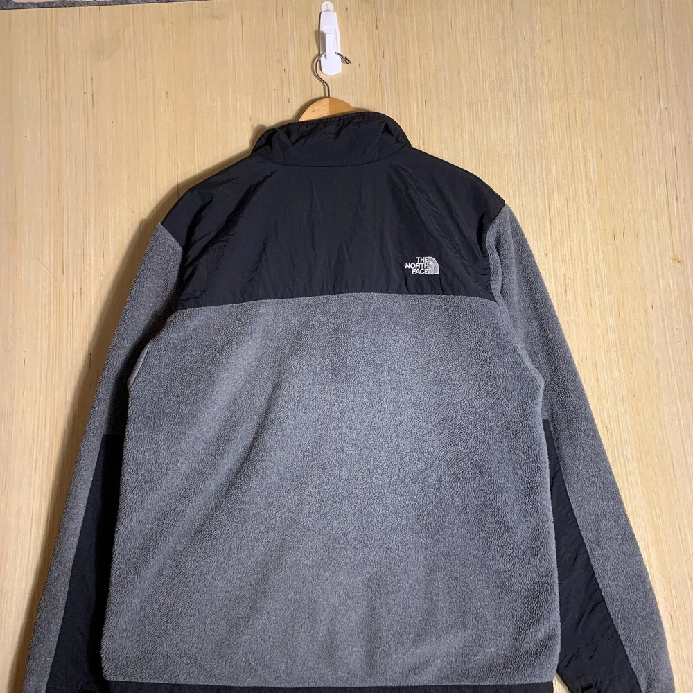 The North Face Sweater is a men's gray knit sweater with a tight-knit pattern and a full zip-up style. It features long sleeves, a crew neck, and is made of cotton material. The sweater is designed with zipper accents and an embroidered logo, making it suitable for various occasions like travel, weddings, parties, casual wear, and even formal or work settings. This versatile sweater is a size large and has a regular fit, perfect for those looking for a comfortable yet stylish addition to their wardrobe, especially during the colder seasons.