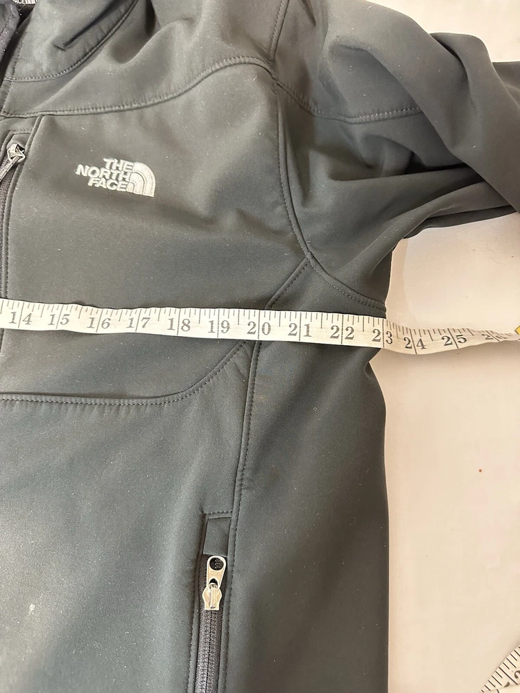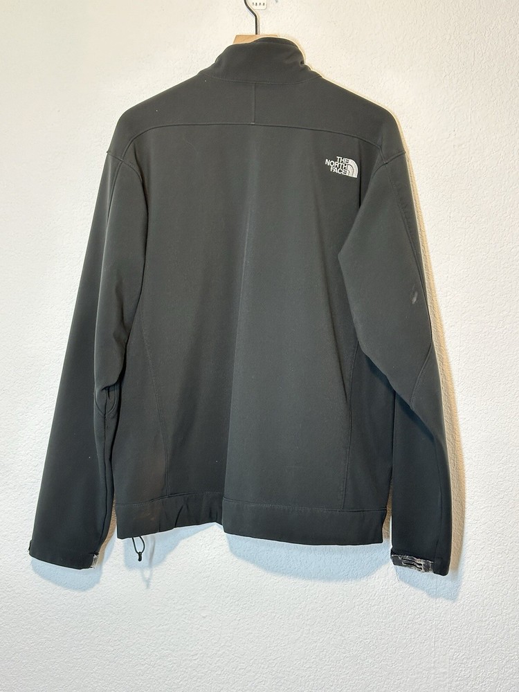 The North Face Jacket Mens Large Black Apex Soft Shell Full Zip Good READ There Are 2 Marks Front Do Not Go All The Way Through Right Sleeve Light Mark Back And Wrist Straps Have Wear. SEE LAST 3 PICTURES