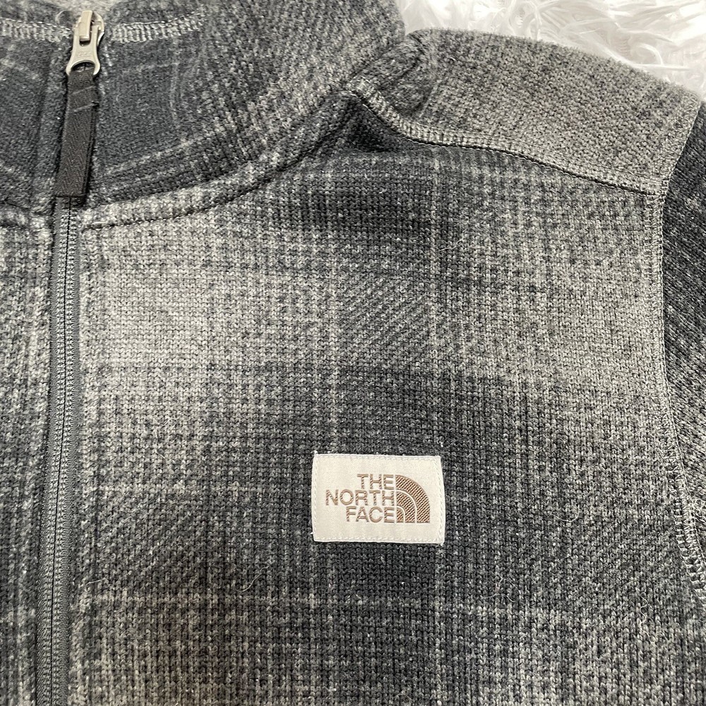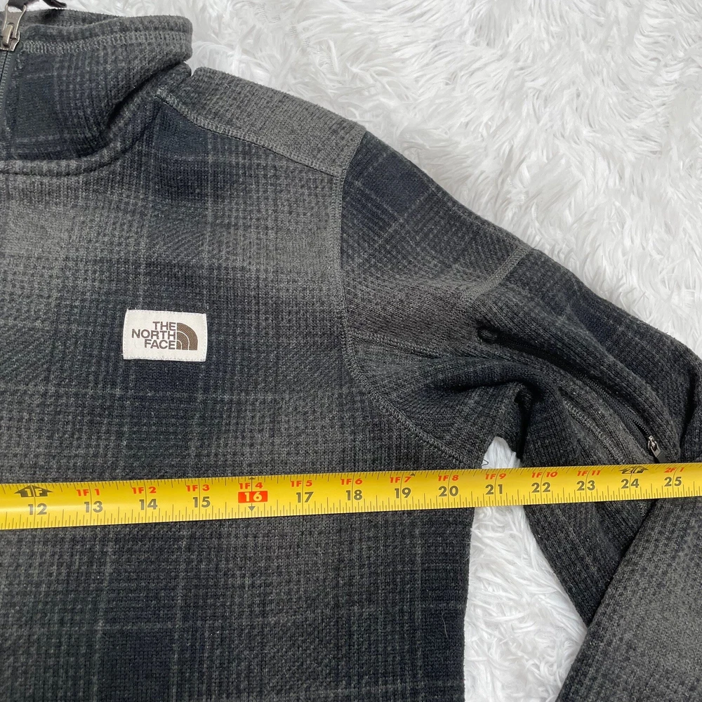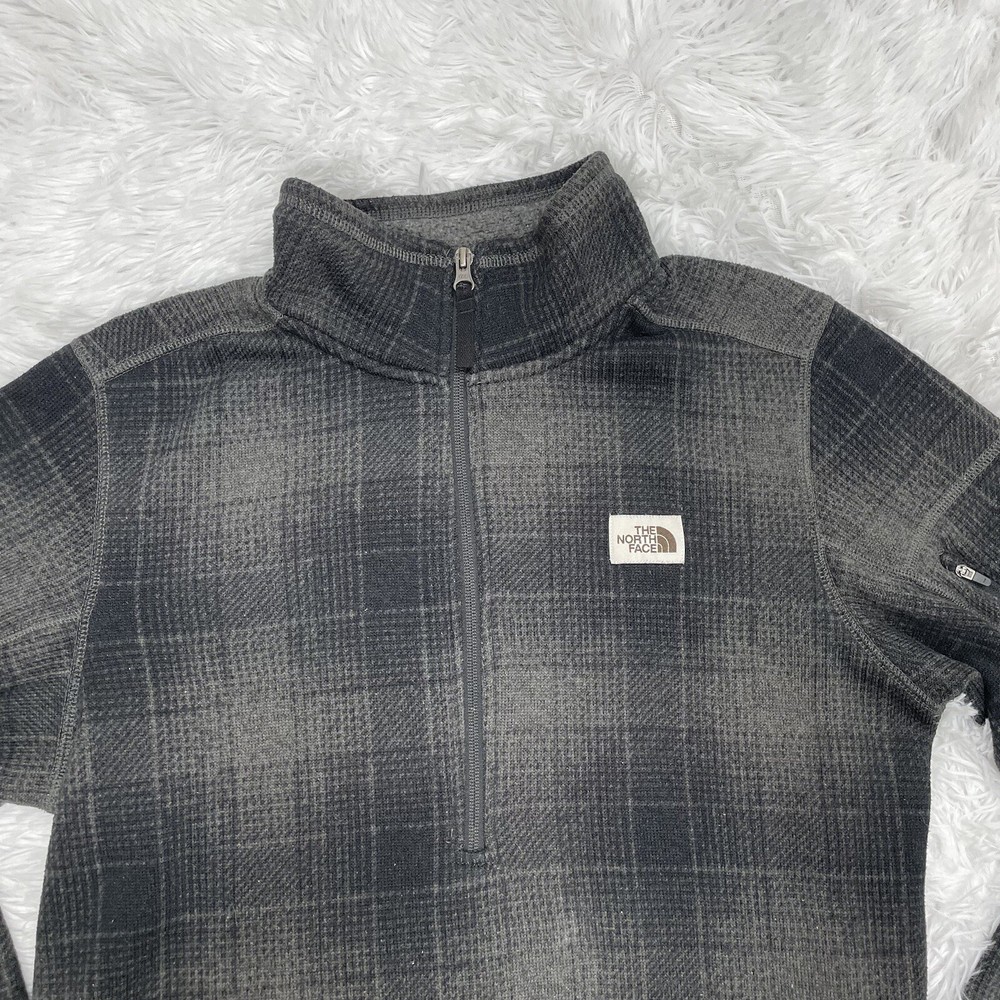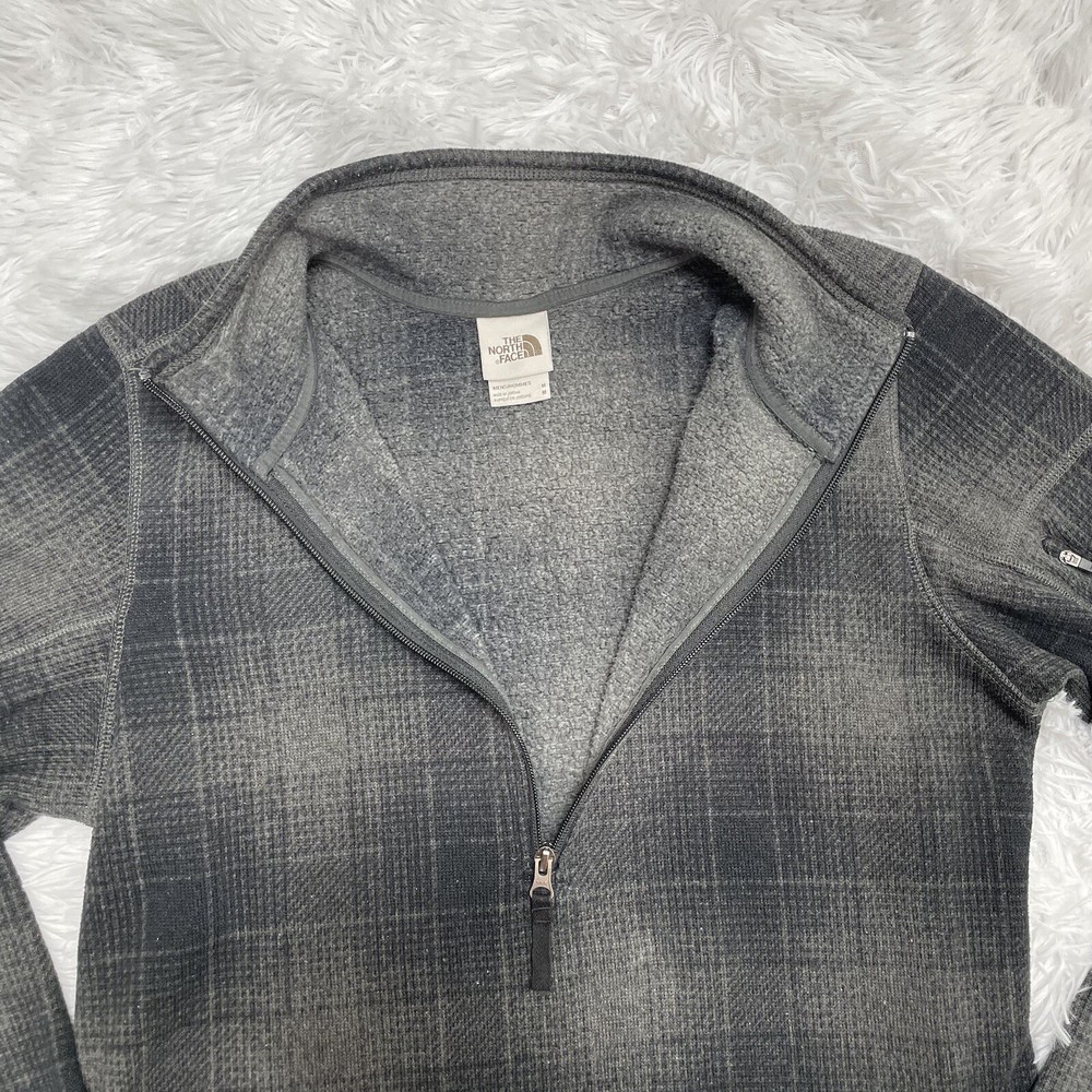 The North Face Mens 1/2 Zip Plaid Fleece Size M Medium Gray Black Sweatshirt No stains or holes