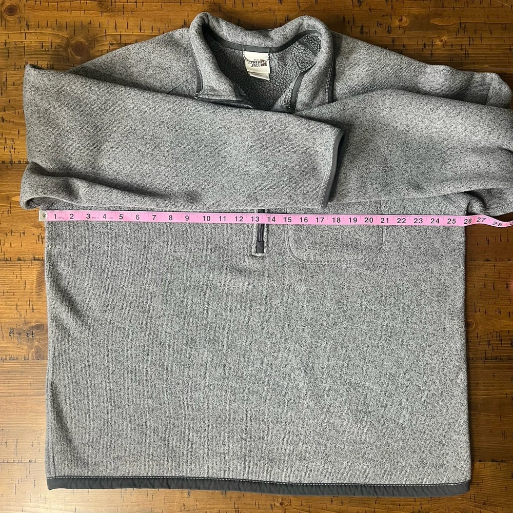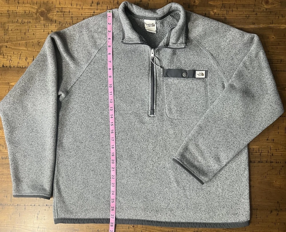 Garment Care: Machine Washable Brand: The North Face Department: Men Material: Polyester Type: Sweater Size Type: Regular Pattern: Solid Fabric Type: Fleece Performance/Activity: Hiking, Running & Jogging, Walking Theme: Classic Style: Pullover Neckline: Mock Neck Color: Gray Size: XL Features: 1/4 Zip