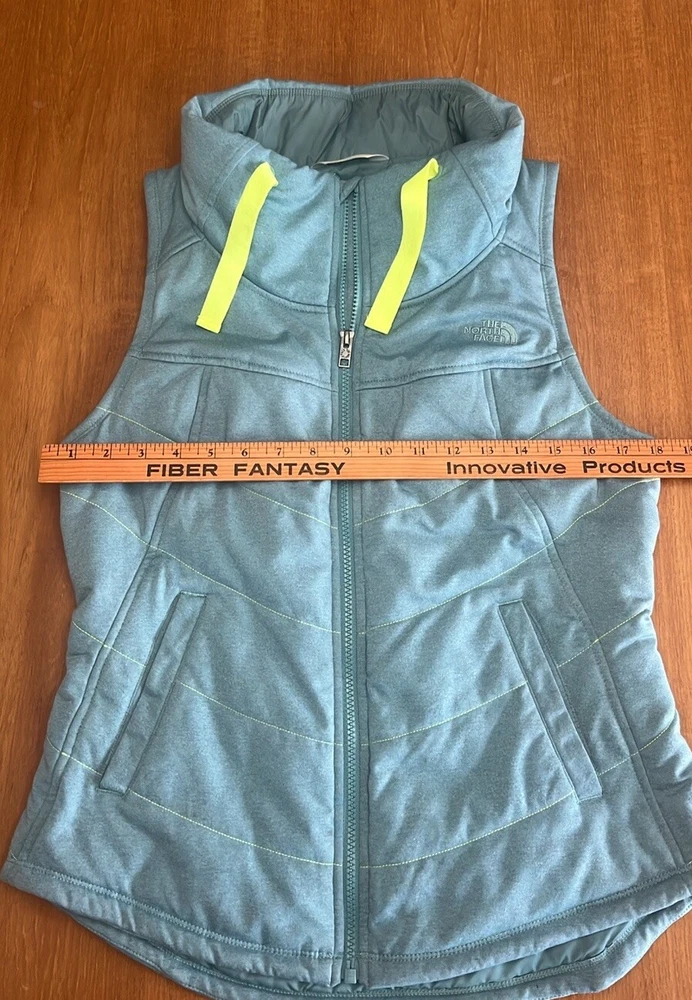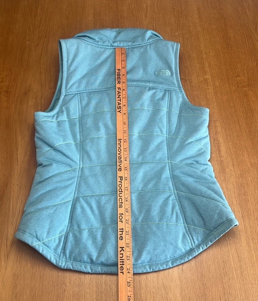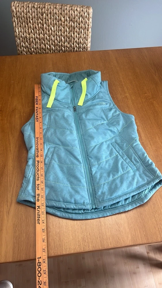 This The North Face vest is a must-have for an outdoor enthusiast or casual indoor wearer. The quilted pattern adds a touch of style to this teal polyester knit vest, which features a zip front closure and sleeveless design. It is perfect for travel, workwear, or casual occasions, and its lightweight knit fabric makes it suitable for winter, fall, and spring. The vest comes in size S and has multiple pockets to store your essentials. It is machine washable and made with polyester insulation material, making it warm and comfortable to wear. The North Face brand is known for its quality and durability, and this vest is no exception. Add this classic piece to your wardrobe today! See pics for details. Excellent preowned condition! Ships same/ next day! Reasonable offers welcome!
