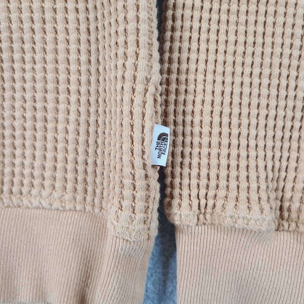 Experience the perfect blend of comfort and style with The North Face Women's Chabot Hoodie in a delightful almond butter color. Designed for those who appreciate a classic sporty look with a thermal waffle knit fabric, this hoodie promises to keep you warm without compromising on fashion. Its long raglan sleeves and hooded feature make it an ideal choice for outdoor activities like walking, hiking, and running, ensuring you stay cozy in all seasons. Crafted from soft cotton and featuring a solid pattern with The North Face logo accent, this pullover hoodie is as versatile as it is fashionable. The machine-washable garment offers a regular fit in a size small, perfect for activewear or casual outings. Whether you're hitting the trails or running errands, this hoodie is a dependable addition to your wardrobe, ready to tackle the elements while showcasing your love for the great outdoors.