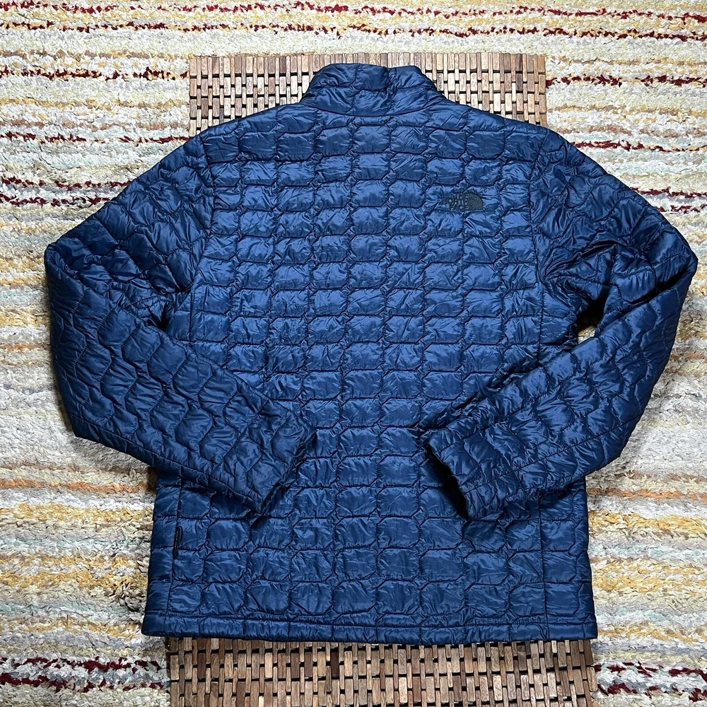 Stay warm and stylish with this blue Thermoball quilted puffer jacket from The North Face. Featuring a full zip closure, this jacket is perfect for travel, casual wear, and work. The jacket is made of softshell fabric with a polyester lining, and it is insulated with recycled polyester. The jacket has a solid pattern with embroidered logo accents, and it is designed for men in a regular size medium. It is suitable for outdoor activities like walking, skiing, and hiking, and it is perfect for the winter, fall, and spring seasons. The North Face Thermoball jacket is a great addition to any wardrobe, and it is sure to keep you warm and comfortable wherever you go.