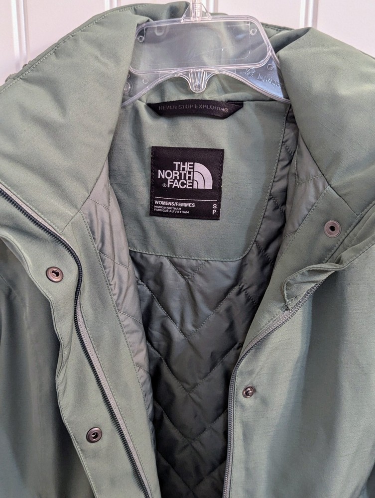 Size Type: Regular Color: Green Outer Shell Material: Polyester Department: Women Type: Jacket Features: Hooded, Waterproof Size: S Brand: The North Face Style: Parka