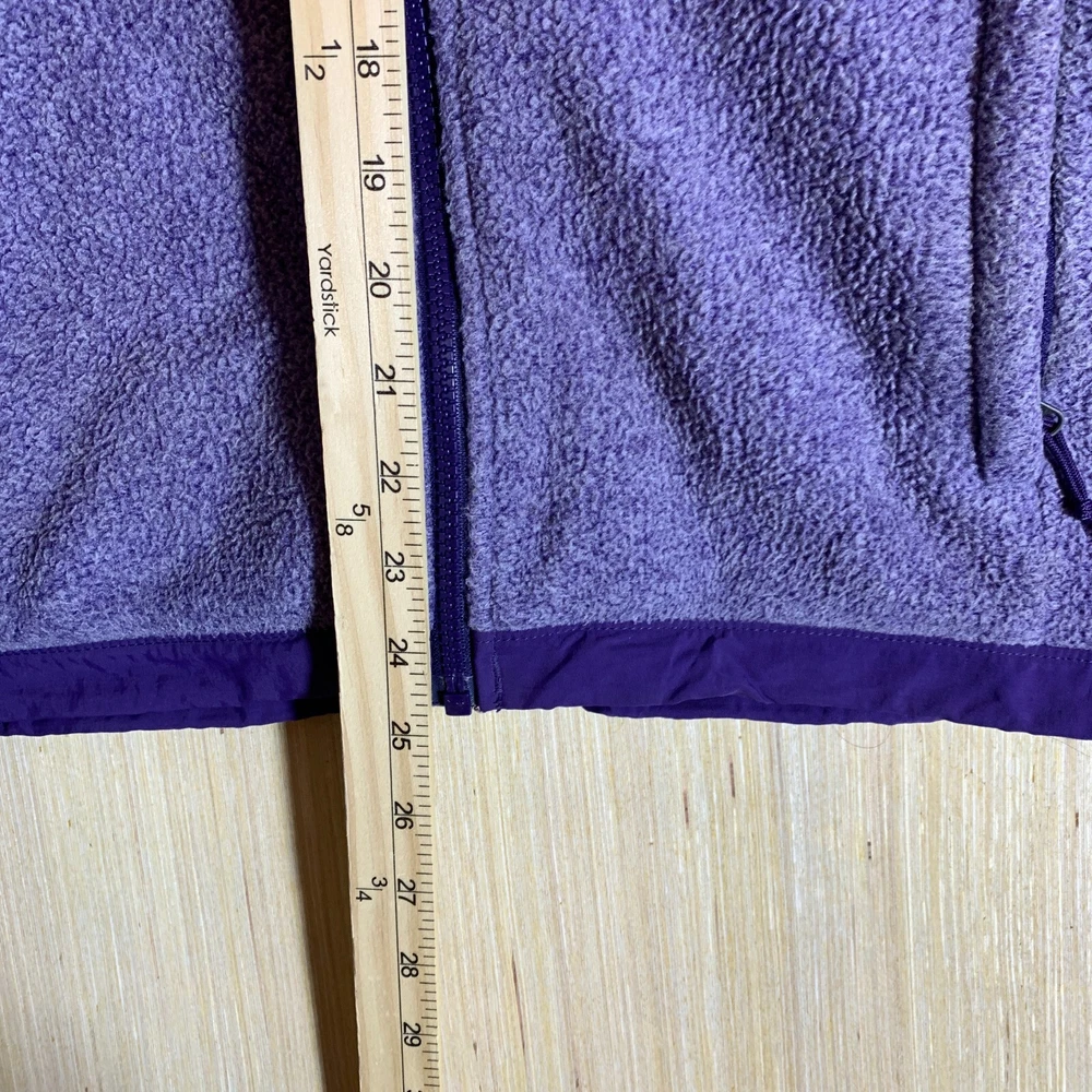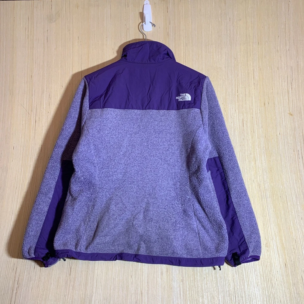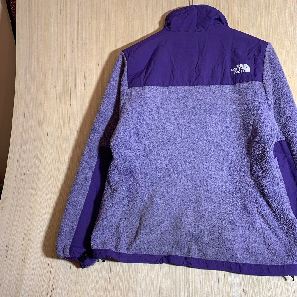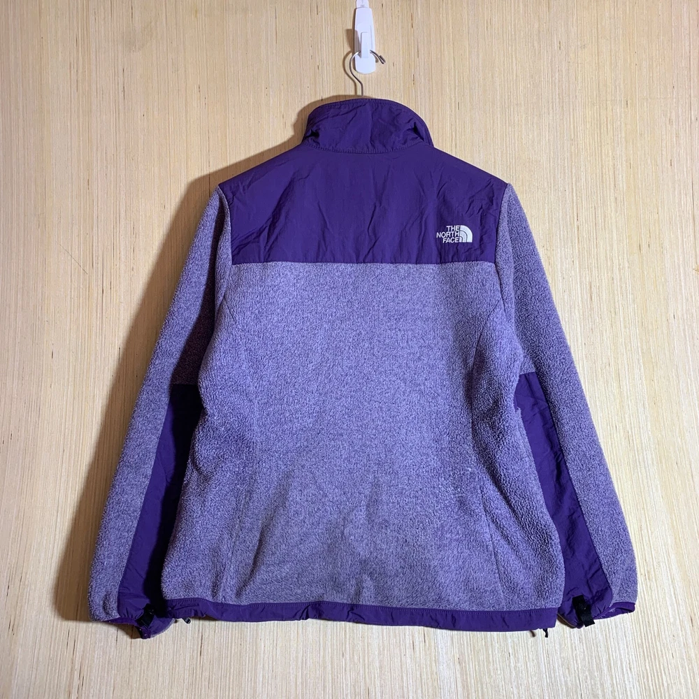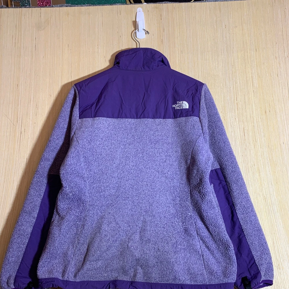 This purple sweater from The North Face is perfect for any outdoor adventure. With a tight-knit cotton fleece fabric, it's both lightweight and warm, making it ideal for all seasons. The full zip style and embroidered logo add a touch of hipster and nature-inspired flair, while the long sleeves and crew neck provide practical warmth. The sweater also features a vintage Denali design, making it a classic and funny addition to any wardrobe. Whether you're a hippie, a motorcycle rider, or a fan of 90s hip hop, this sweater is sure to fit your style.
