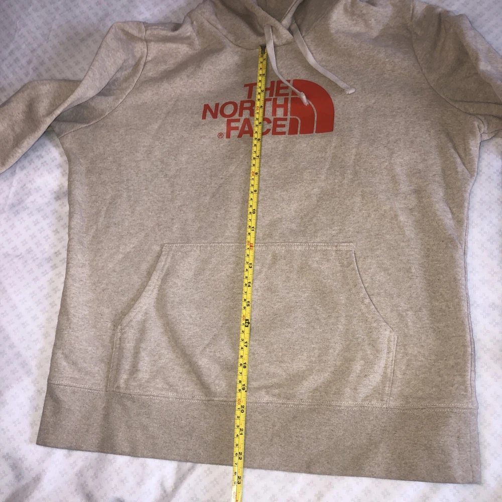 Elevate your activewear with The North Face Women's Hoodie in a versatile beige color, complemented by an orange logo accent that adds a touch of style. This pullover sweatshirt is tailored for a comfortable athletic fit, making it ideal for walking, hiking, or running and jogging adventures. Crafted from a cozy cotton-polyester blend, with a polyester cotton blend lining, it's designed to keep you warm in the winter and cool in the summer, with a hooded feature for all-season wear. Functionality meets fashion with this hoodie's long sleeves, thumb holes for added warmth, and convenient pockets for your essentials. The solid beige hue makes it a classic addition to your wardrobe, seamlessly blending with any outfit or occasion. Machine washable for easy care, this hoodie promises durability and comfort whether you're hitting the trails or the city streets.