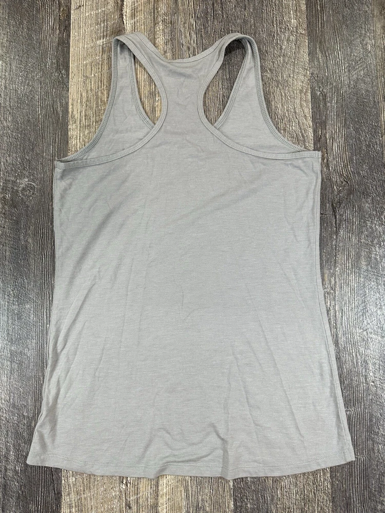 The North Face Womens Medium Blue Heather Gray Racerback Tank Top with USA Flag EUC