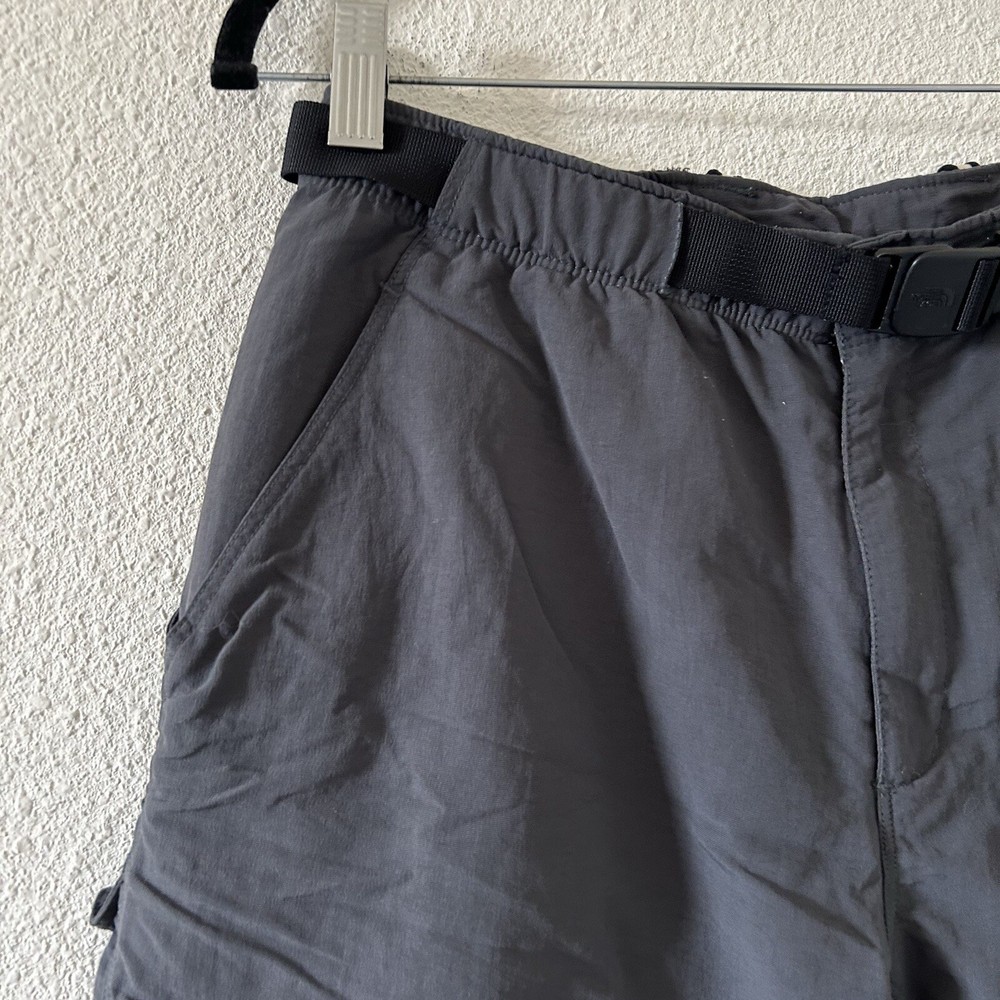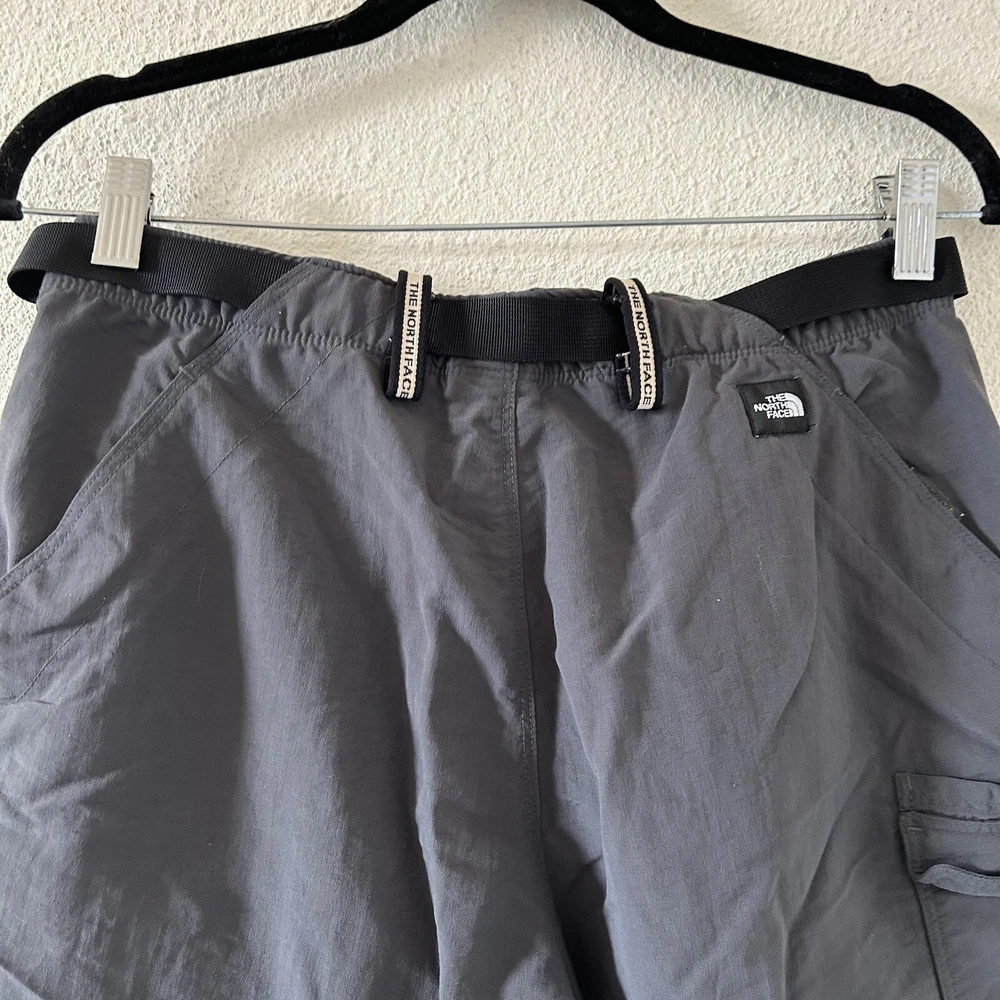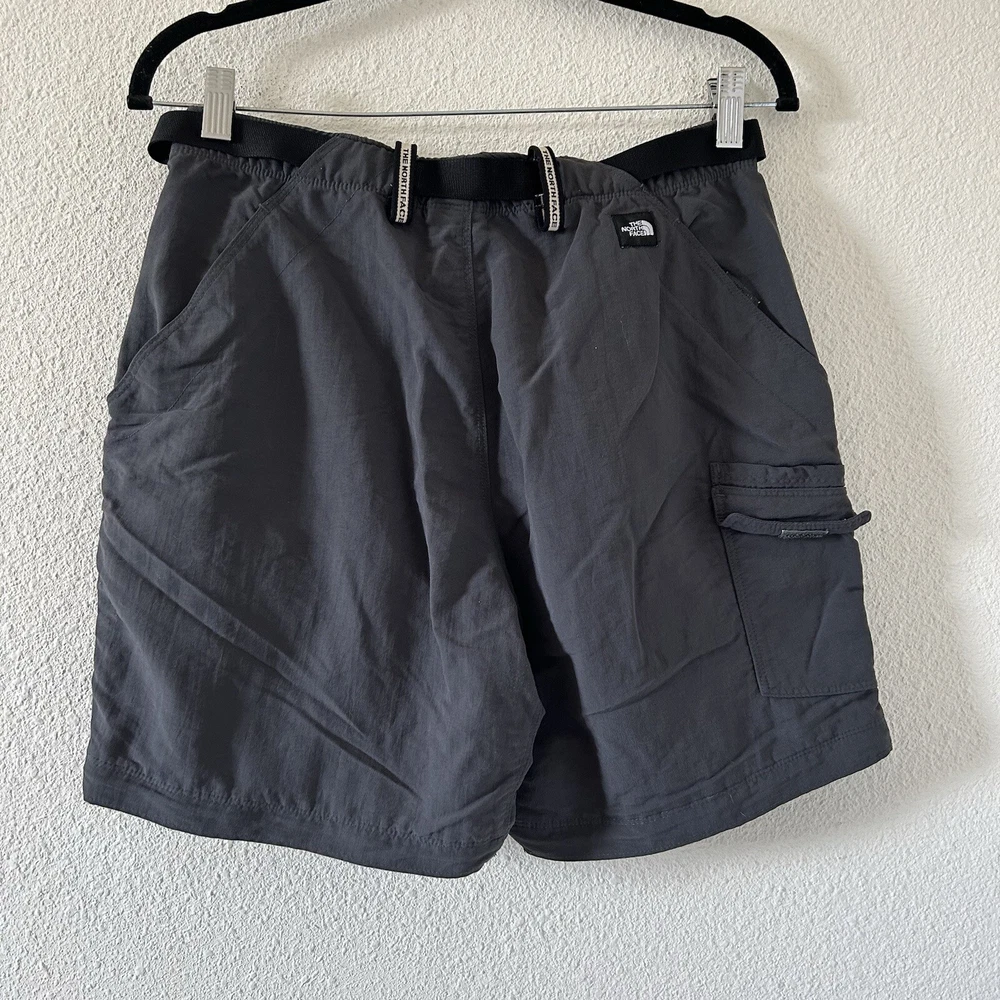 The North Face Women’s Nylon Active Shorts Medium Gray Outdoors in good condition/ Not stretchy/ comes with belt / I believe these are the 2 in 1 zip off pant to shirts but they are only shorts 15” across waist 10” rise 6.5” inseam Approximate measurements All final sale #92 Outdoors snow active Summer