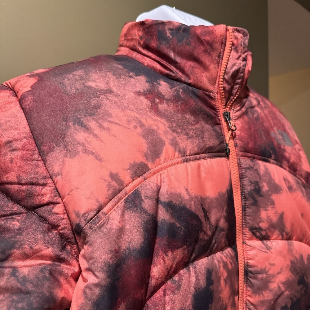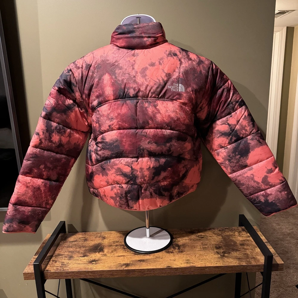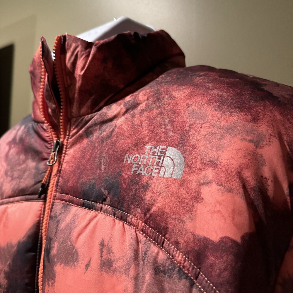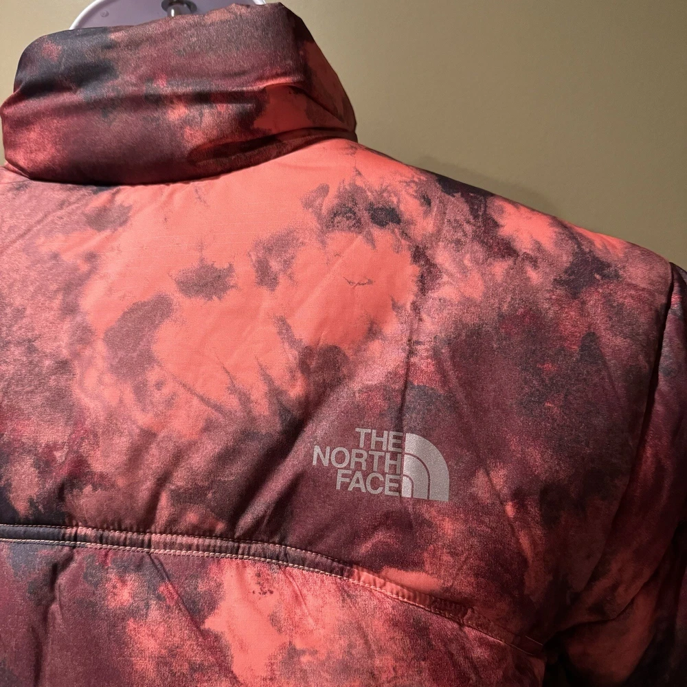 Stay warm and stylish with The North Face Windproof ECO TNF 2K 2000 Puffer Jacket for women. This jacket is made of 100% recycled polyester with insulation material also made of recycled polyester. The coral sunrise ice dye print with TNF mid grey logo is a perfect fit for women who want to look fashionable even in cold weather. The jacket is windproof and insulated, making it perfect for fall, winter, and spring. It is available in size M, with a regular size type. This jacket is ideal for women who love the outdoors and want to stay warm while exploring. Get ready to head out in style with The North Face Windproof ECO TNF 2K 2000 Puffer Jacket.
