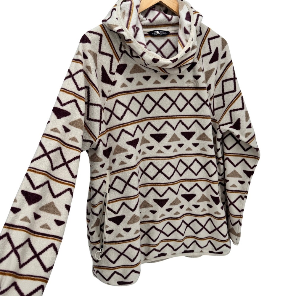 The North Face Hoodie Womens XL Cream Tan and Brown Alpine Nordic Fleece Pullover Aztec COMFY + Pockets Very good condition, see all pictures for views. •Pit to pit: 23" •Shoulder to hem: 29" Thank you for your purchase, we appreciate you!