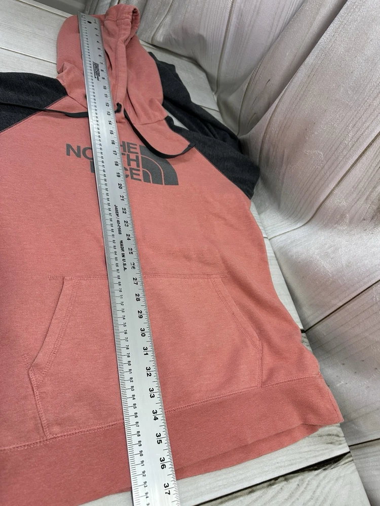 Embrace the outdoors or casual comfort with this stylish North Face women's hoodie in size XL. The pullover features a vibrant blend of coral and gray, complemented by the iconic Half Dome logo that adds a touch of adventure to your attire. Crafted from a cozy blend of cotton, polyester, and more, this hoodie promises both warmth and durability across all seasons. Designed with practicality in mind, it boasts convenient pockets and is machine washable for easy care. The long sleeves and solid knit fabric make it a versatile piece for activewear, travel, or everyday casual looks. Whether you're hitting the trails or the streets, this hoodie keeps you looking great and feeling even better.