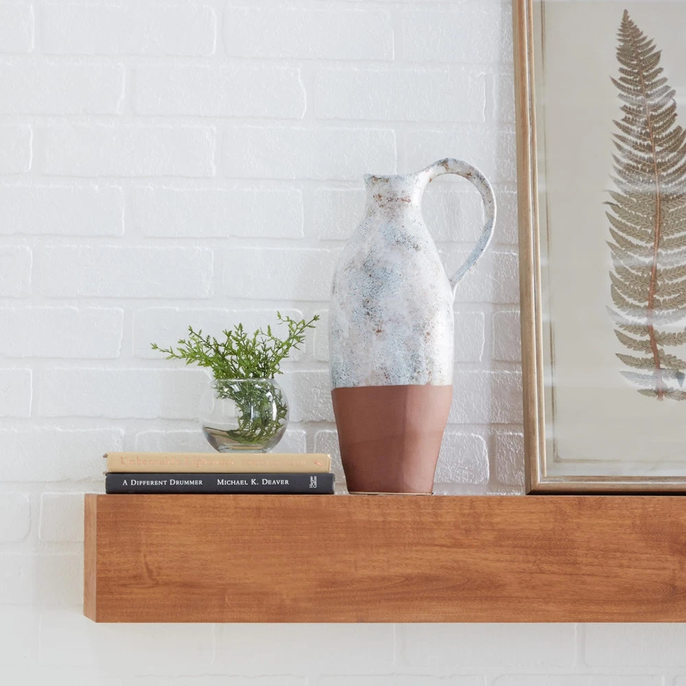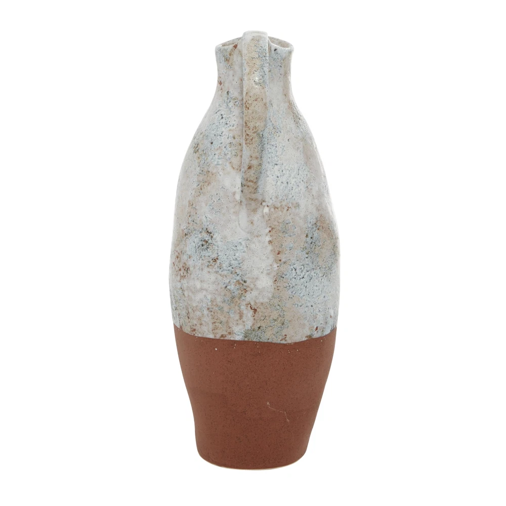 Display in entryway, mantel or living room console with dried flowers, twigs, or other . Designed with felt or rubber stoppers at the base that prevent scratching furniture and table tops, as well as sliding around. This item ships in 1 carton. Due to the handmade nature of this item, no will be alike, there will be slight differences in shape, size, and color. Suitable for indoor use only. This item ships fully assembled in piece. This is a single white colored vase. Farmhouse style. Vase has a 2 in mouth opening. FARMHOUSE HOME DÉCOR VASE: Infuse your home with cozy charm, where weathered textures, rustic finishes, and warm earthy tones create a wholesome atmosphere CERAMIC VASE FOR CENTERPIECE: Solid ceramic stoneware vase WHITE AND RUST VASE FOR FLOWERS: Bubbled white glaze with stone finish throughout the top, matte rust brown base and interior AMPHORA VASE FOR HOME DÉCOR: This ceramic white vase features a lekythos-inspired shape with half-tipped design SMALL SIZE FLOWER VASE CENTERPIECE: The white ceramic vase measures 5.45L x 7.15W x 14.45H inches, and weighs 3.48 lbs