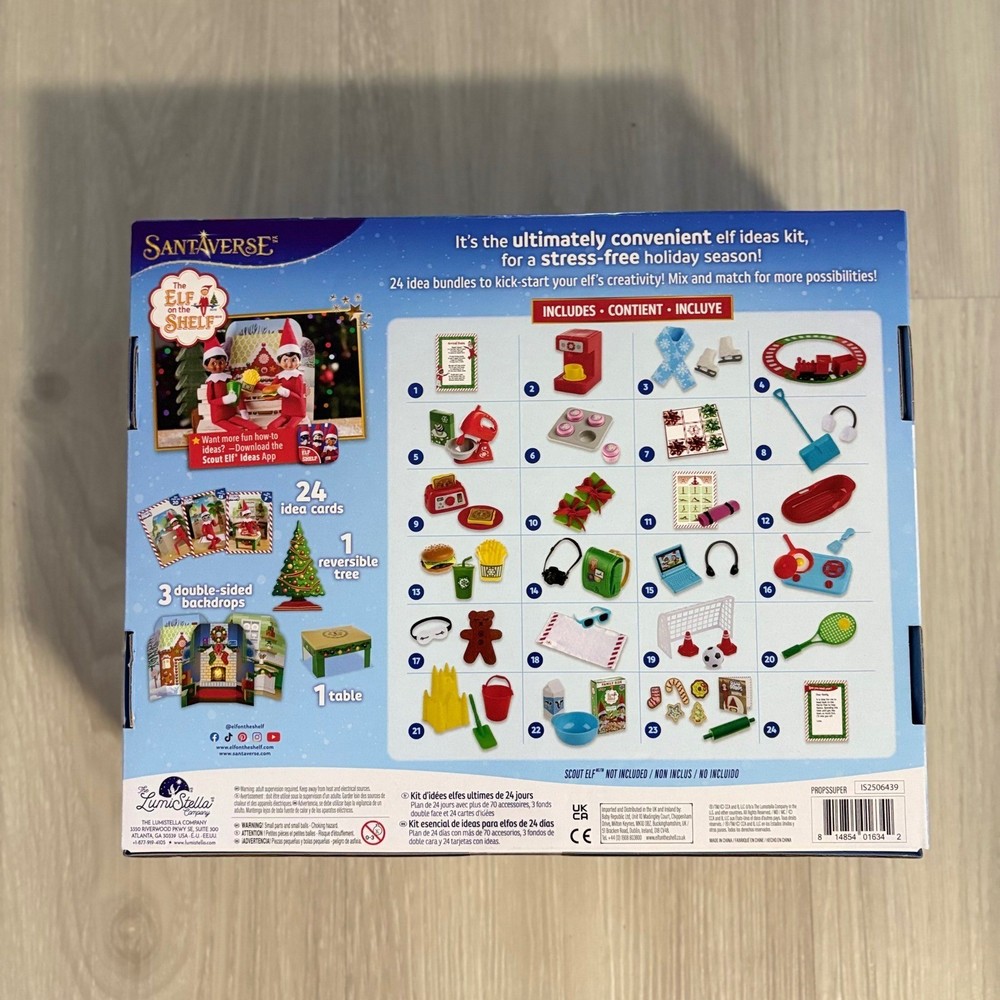 Unleash your holiday magic with The Official Elf on the Shelf 24Day Ultimate Elf Ideas Kit, your secret weapon for stress-free elf fun! This Santa-approved kit bursts with 100 delightful pieces, including 24 idea cards and 3 double-sided backdrops, designed to spark endless joy and creativity for your scout elf's daily adventures. Imagine the gasps of delight as your little ones discover each morning's whimsical scene, from a cozy yoga session to a festive tree decorating party, all brought to life with the vibrant props and immersive backdrops. The included reversible tree and table provide charming foundations for countless scenarios, ensuring every day is filled with wonder and excitement. Occasion: Christmas Keywords: Elf on the Shelf, Elf Ideas Kit, 24 Day Kit, Christmas Props, Scout Elf, Holiday Decorations, Santa Approved, Kids Activities, Family Fun, Christmas Countdown, Elf Accessories,