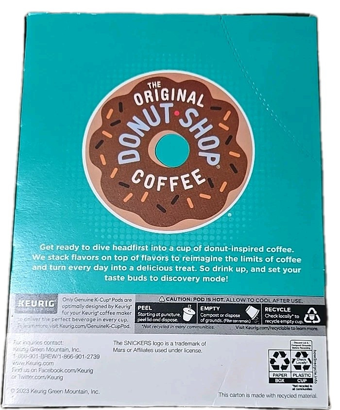 Get your morning fix with these delicious coffee pods from The Original Donut Shop. Flavored with the iconic Snickers taste, these K-Cup coffee pods are perfect for black coffee lovers who want to add a little sweetness to their coffee. Each pack contains 24 pods that are compatible with Keurig machines. These gluten-free coffee pods are made in the United States and are free from tree nuts. Each pod contains less than 50 calories and is perfect for those who want a quick and delicious coffee experience. With an expiration date of 10/2026, you can enjoy these coffee pods for a long time.