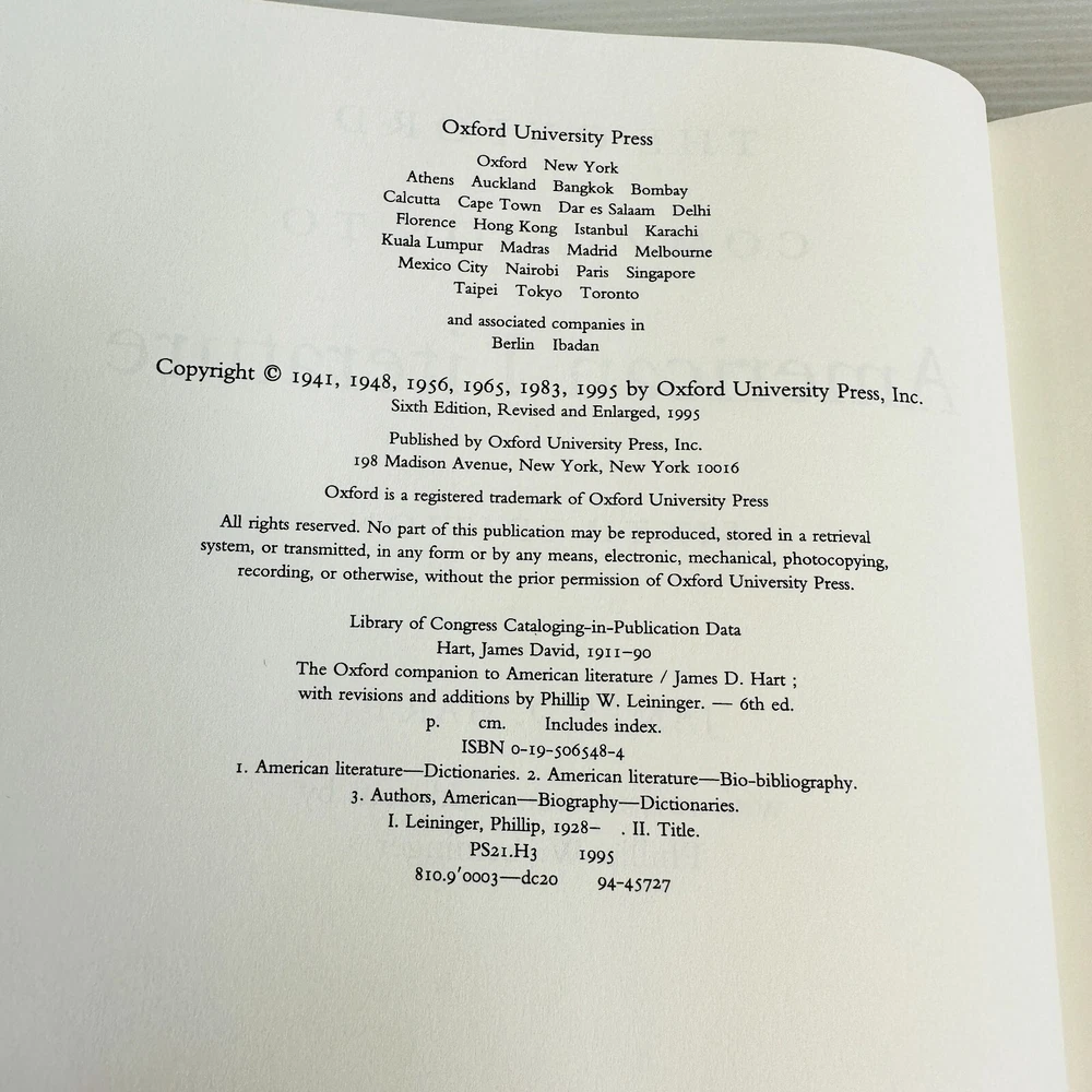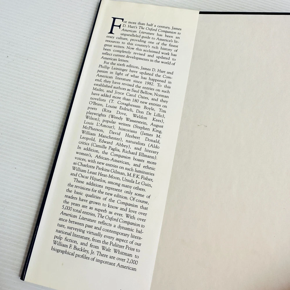 The Oxford Companion to American Literature by James D. Hart Hardcover 6th Ed Item posted within two business days of payment clearing via Australia Post. Australian seller - smoke free - pet free - working mum Adding new book listings daily to my store. My books are sent in strong Australia Post, Australian made, water resistant padded mailers that are recyclable through the REDcycle program and can be recycled at any major shopping centre. Pre-owned, some highlighting noted, see photos for condition and read the description.
