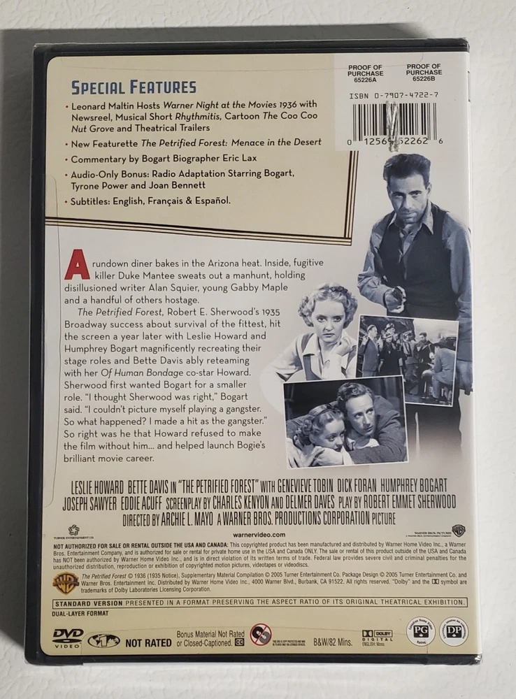 Experience the gripping drama of "The Petrified Forest" on DVD, a classic film featuring the legendary Humphrey Bogart. Released in 2005, this timeless movie is a must-have for any film enthusiast. Directed by Archie L. Mayo, this film is a masterpiece that will keep you on the edge of your seat from beginning to end. This DVD is perfect for those who enjoy movies with strong storylines and complex characters. "The Petrified Forest" is a film that will stay with you long after you've left the theater. Get your copy today and experience the magic of this classic drama.