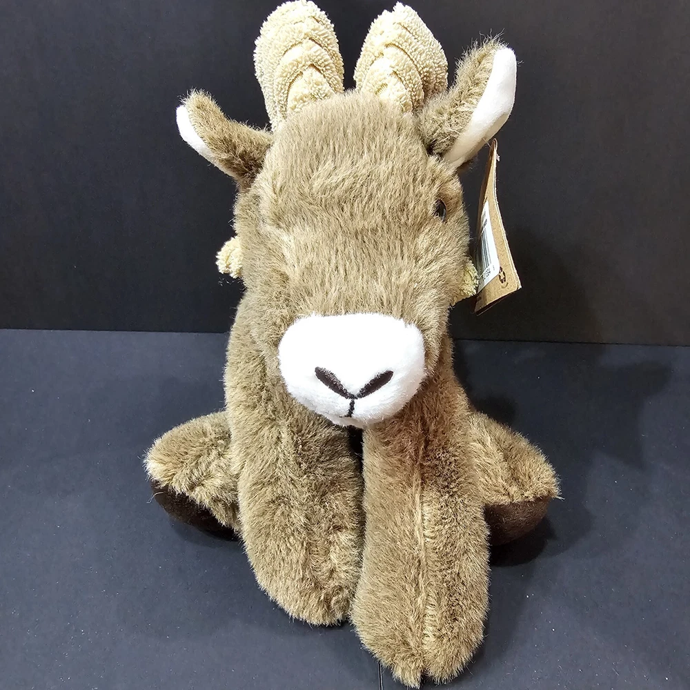 The Petting Zoo Big Horn Sheep Brown Wildlife Floppy Plush Stuffed Animal NWT 8 inches long from nose to tail 9 inches tall from top of horns