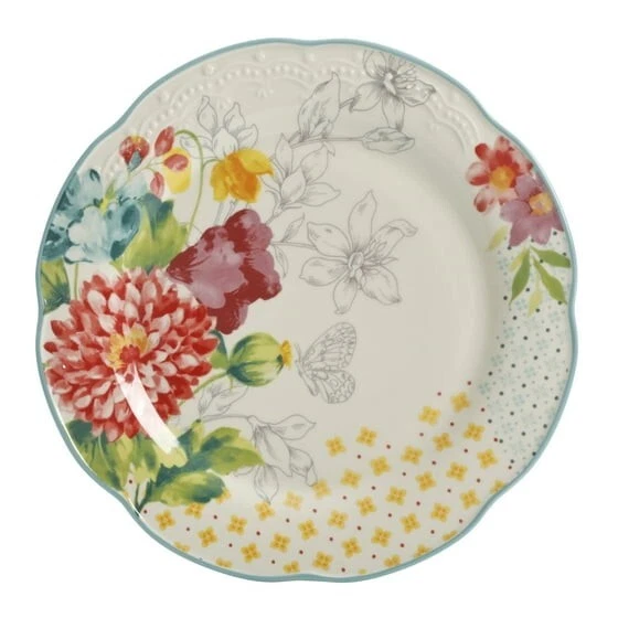 Product details The Pioneer Woman Blooming Bouquet 12-Piece Dinnerware Set is the perfect addition to your everyday dining table. Made from durable stoneware, this classic dish set is versatile enough for everyday use while maintaining an understated elegance for special occasions. Place settings for four include all the pieces you need to serve a wide range of cuisines and courses with dinner plates, dessert plates, and bowls. All featuring vibrant floral patterns and a subtly scalloped rim that adds color and life to any tablescape. Make your meals look cookbook-ready and elevate your serving with these versatile pieces. Dishwasher and microwave safe, this dinnerware set is easy to clean. Easy to pair with other items in the Pioneer Woman Collection, they also look great when stacked on your shelves or buffet display. The Pioneer Woman Blooming Bouquet 12-Piece Dinnerware Set serves up gorgeous colors with a classic styling that is sure to enhance your dining experience whether you're sharing meals with friends or by yourself. 4 - 10.75" dinner plates 4 - 8.5" salad plates 4 - 6.25" bowls Bring country charm to everyday dining with colorful patterns and subtle scalloped rim shape Made of durable stoneware Mix and match with other items in the Pioneer Woman Collection Decorated with Ree's signature floral designs Perfect for everyday use or elevated entertaining Dishwasher and microwave safe