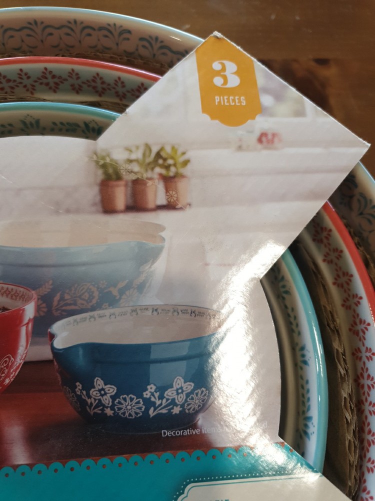 The Pioneer Woman Mazie Collection 3-Piece Nesting Mixing Bowl Set with Pour Spout – Stylish and Functional Batter Bowls for Baking and Prep – Vibrant Floral Design – Durable and Easy to Clean