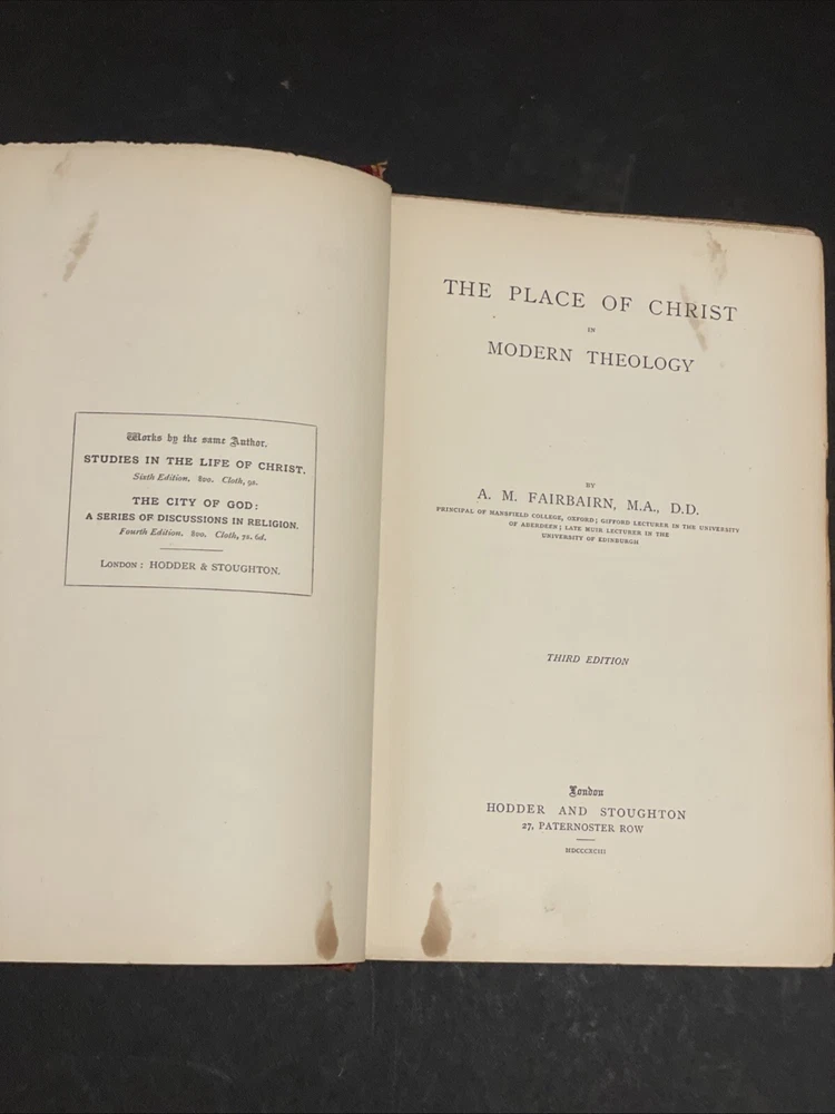 The Place Of Christ In Modern Theology 1893 By A. M. Fairbairn VTG
