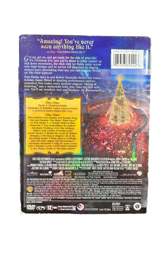 The Polar Express (Two-Disc Widescreen Edition) DVD brings the magical journey of a young boy's adventure to the North Pole to life in stunning widescreen format. This beloved holiday film is a must-have for any movie enthusiast's collection. Immerse yourself in the heartwarming story filled with wonder and joy, perfect for family movie nights or festive gatherings. Get ready to experience the magic of Christmas with The Polar Express on DVD.