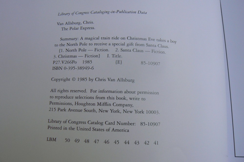 The Polar Express Written and illustrated by Chris van Allsburg Winner of Caldecott Medal in 1986 One couldn't select a more delightful and exciting premise for a children's book than the tale of a young boy lying awake on Christmas Eve only to have Santa Claus sweep by and take him on a trip with other children to the North Pole. And one couldn't ask for a more talented artist and writer to tell the story than Chris Van Allsburg. Allsburg, a sculptor who entered the genre nonchalantly when he created a children's book as a diversion from his sculpting, won the 1986 Caldecott medal for this book, one of several award winners he's produced. The Polar Express rings with vitality and wonder. This large 32-page hardcover is in excellent condition with all pages crisp, clean, and sturdily bound; the dust jacket is even mostly smooth. The hardcover book itself has a pretty maroon cover with a silver bell embossed on it; please see the third photograph. There is an inscription on the cover page. (the only writing/marking anywhere) You won't be disappointed! ~~~~~~~~~~~~~~~~~ I normally mail ON the day I receive payment if it's received before 1 p.m. central time, and the next day if it's later than 1. Please take a look at my other listings; I'm listing several school books (and others!) right now and am happy to combine shipping. All items coming from a smoke-free, pet-free home! Thanks so much for your time! Before leaving your feedback, if for any reason you feel I did not deserve or earn 5 stars in each category, please let me have the opportunity to make it right. I want every transaction to be 5-star worthy! Thanks so much! :)