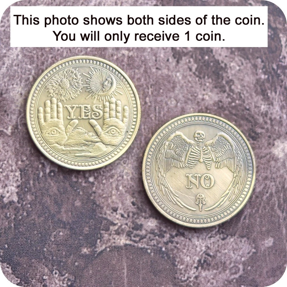 The Relic Coin Of Lucifer ***Yes/No coin included*** An effect combining two magical methods that will baffle your audience. Can be performed in three astounding phases. You show an ancient coin forged by Lucifer himself, saying that it was given to you by an old women in Salem, Massachusetts. A story tells how this coin gives the owner the power to discern Truth from Lies and even to read minds. Unseen by you, someone can put the coin in one of their pockets and you will reveal where it is. You offer to demonstrate this power with one volunteer, then repeat the demonstration with two, and finally with three or even four volunteers. You ask each volunteers one or two questions requiring Yes or No answers. The volunteers may each lie or tell the truth, it is their choice. None of this matters because you only see the truth and instantly say who is hiding the coin, even telling them which pocket it is in. This is so simple to perform and will make you appear to be a powerful mentalist. No peeking! No stooges! 100% accurate every time! You will receive: The Yes/No coin measuring 4cm across. The instructions and full routine in PDF format via email. New delivery via Royal Mail large Letter Group postage and save money, particularly USA customers. I always group postage to save you money. Click on "Add to basket" for each item you require, then go to your basket to see the new total.