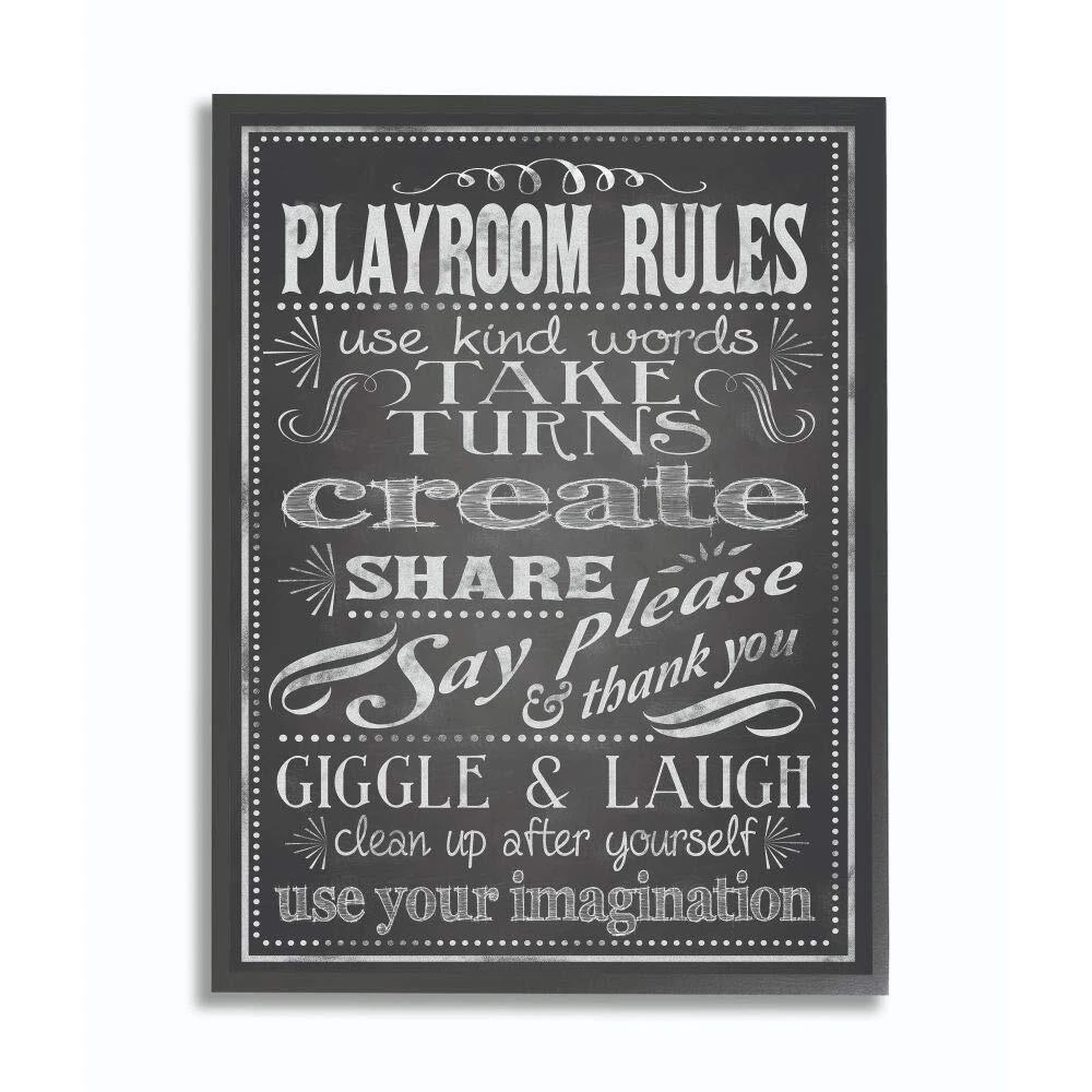 The Room by Stupell Playroom Rules Black And White Framed Giclee Texturized Art