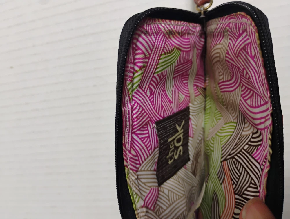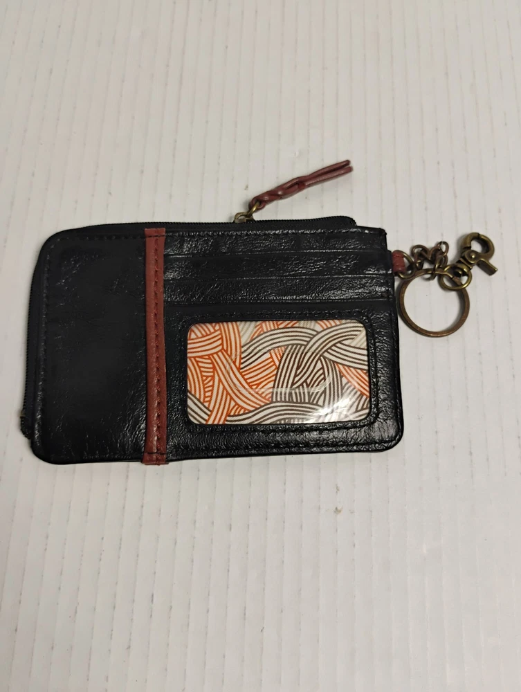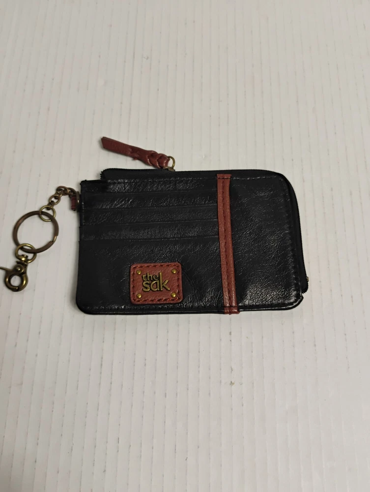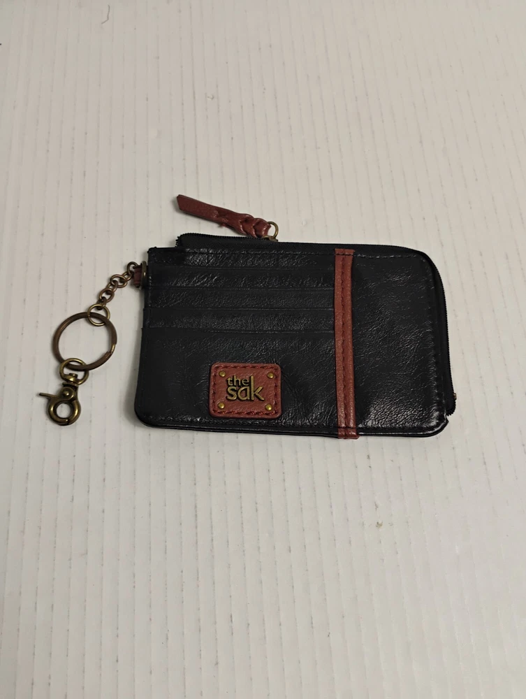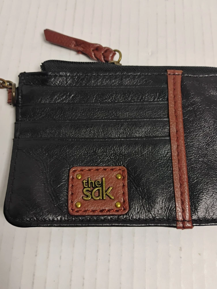 The Sak Leather Iris Card Wallet Case Black With Brown Trim