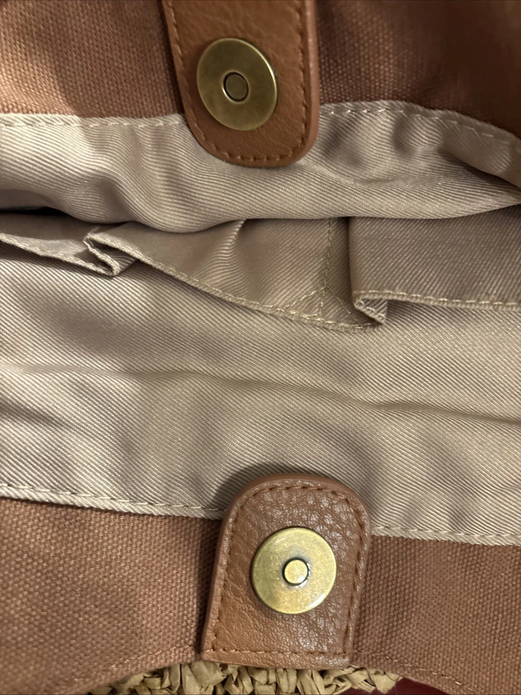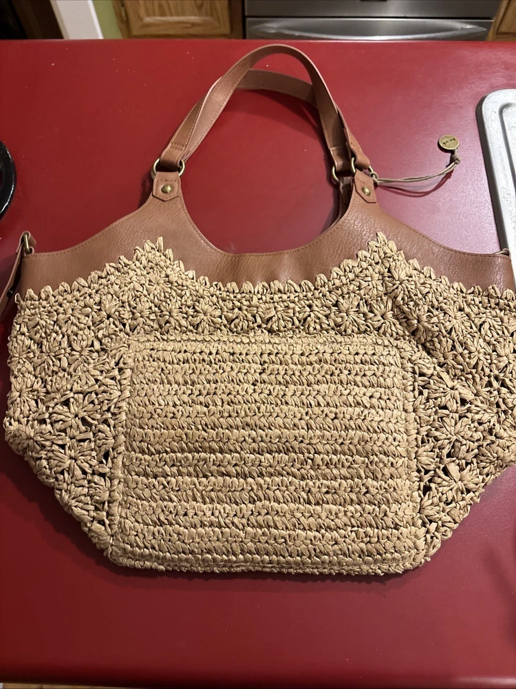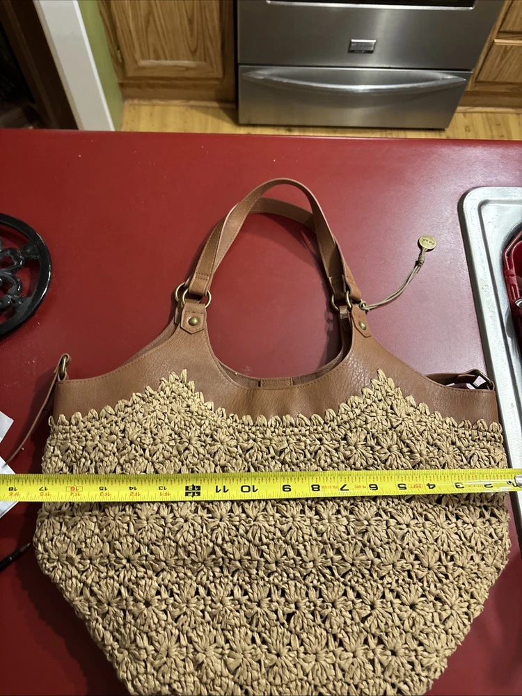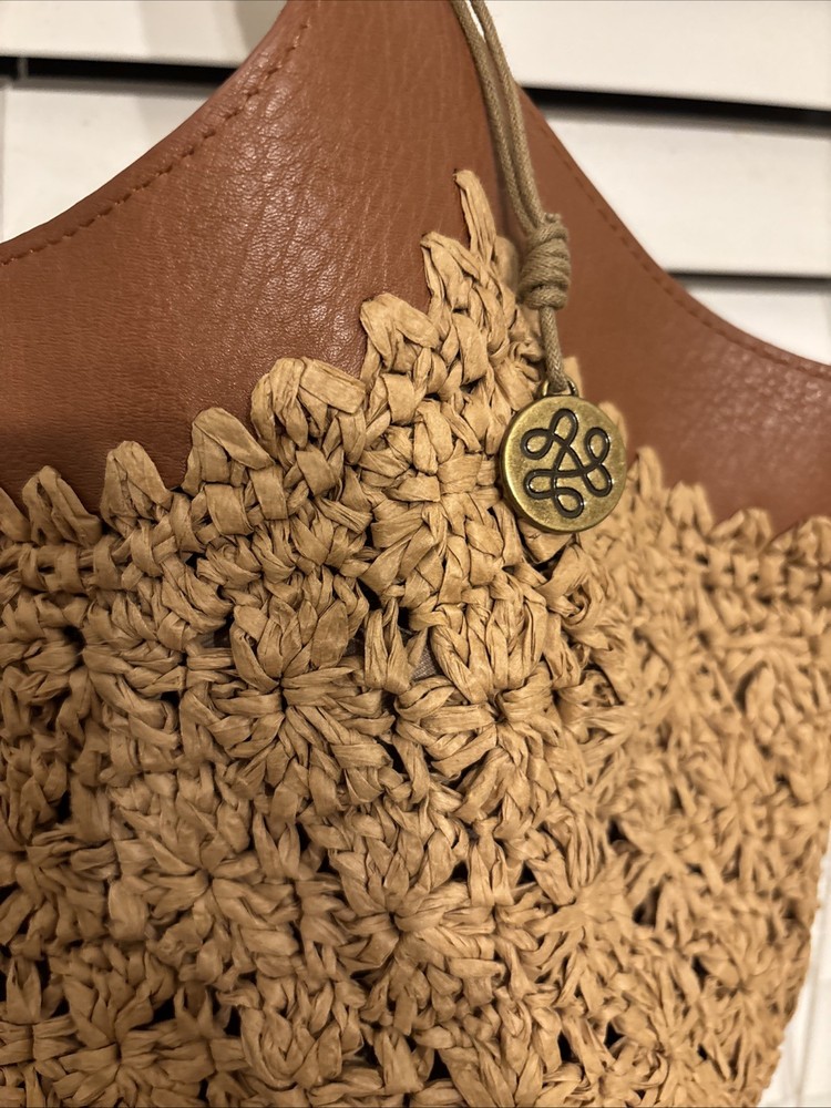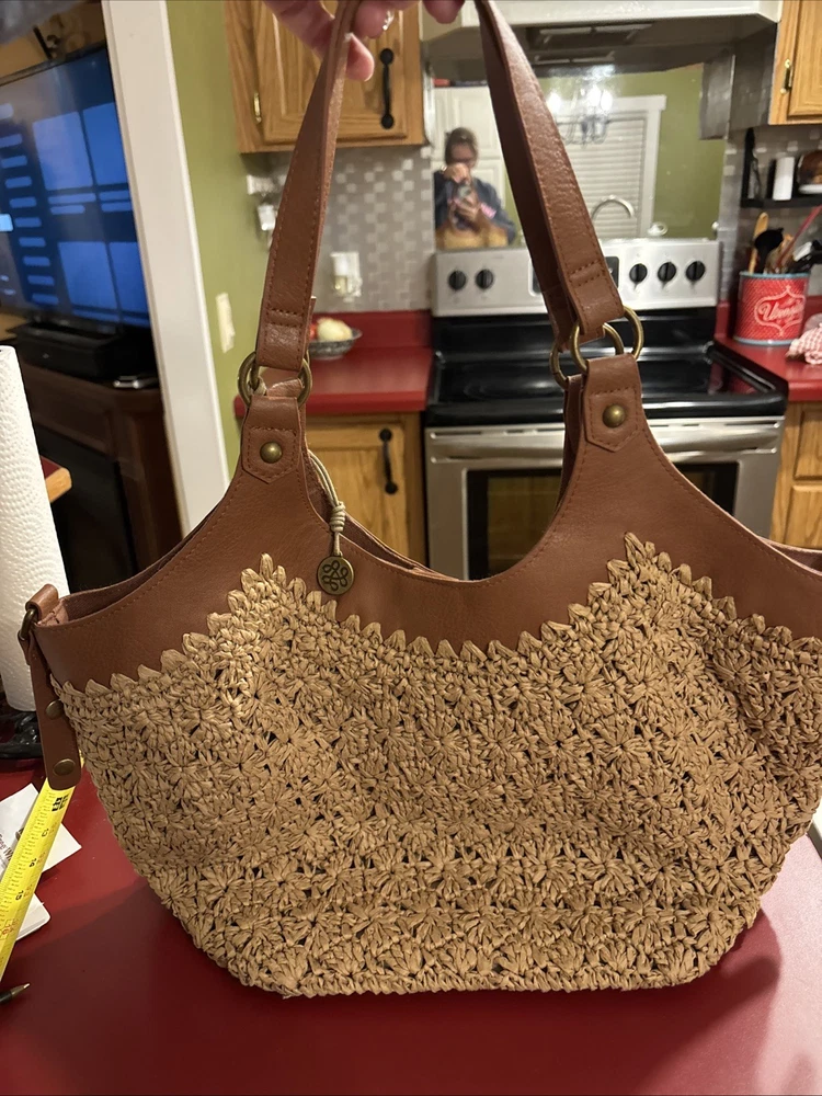 Department: Women Exterior Material: Faux Leather, Straw Closure: Magnetic Style: Hobo Bag Bag Height: 9 in Brand: The Sak Hardware Color: Brown, Gold Exterior Color: Tan Model: The Roma Lining Material: Canvas, Cotton, Fabric, Polyester Country of Origin: China Vintage: No Bag Width: 13 in Handle/Strap Material: Faux Leather Character: Bohemian Size: Medium Handle/Strap Color: Brown Pattern: Woven Lining Color: Beige