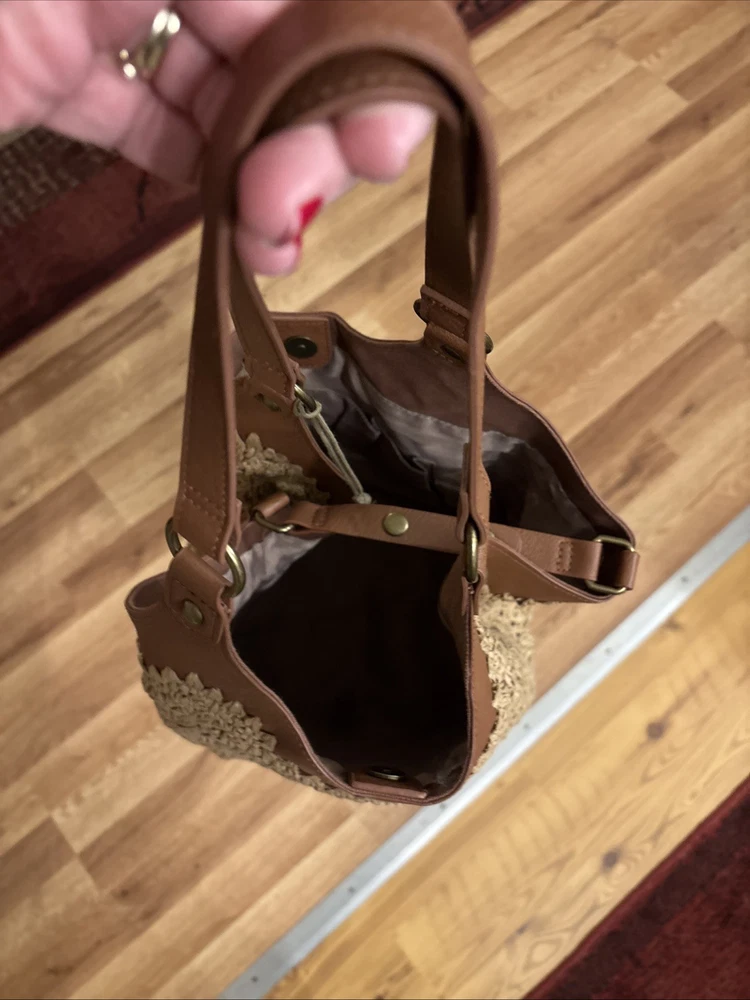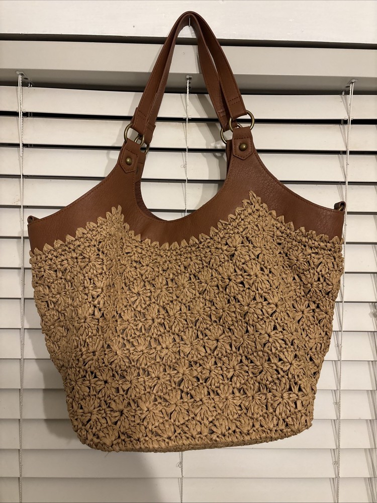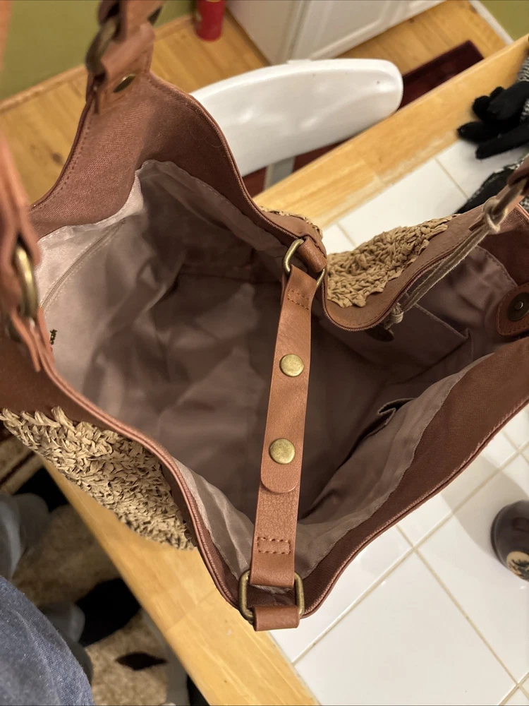 The Sak Roma Tan Woven Straw Hobo Bag Shoulder Bag Purse