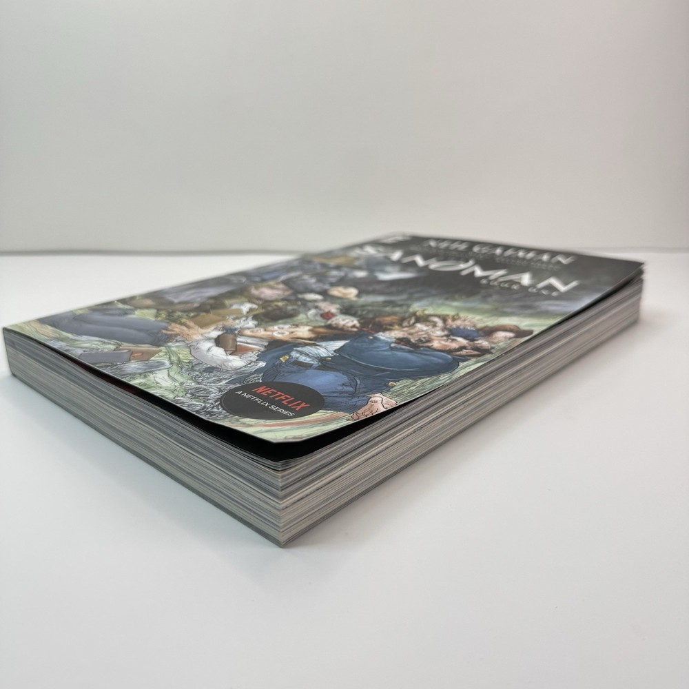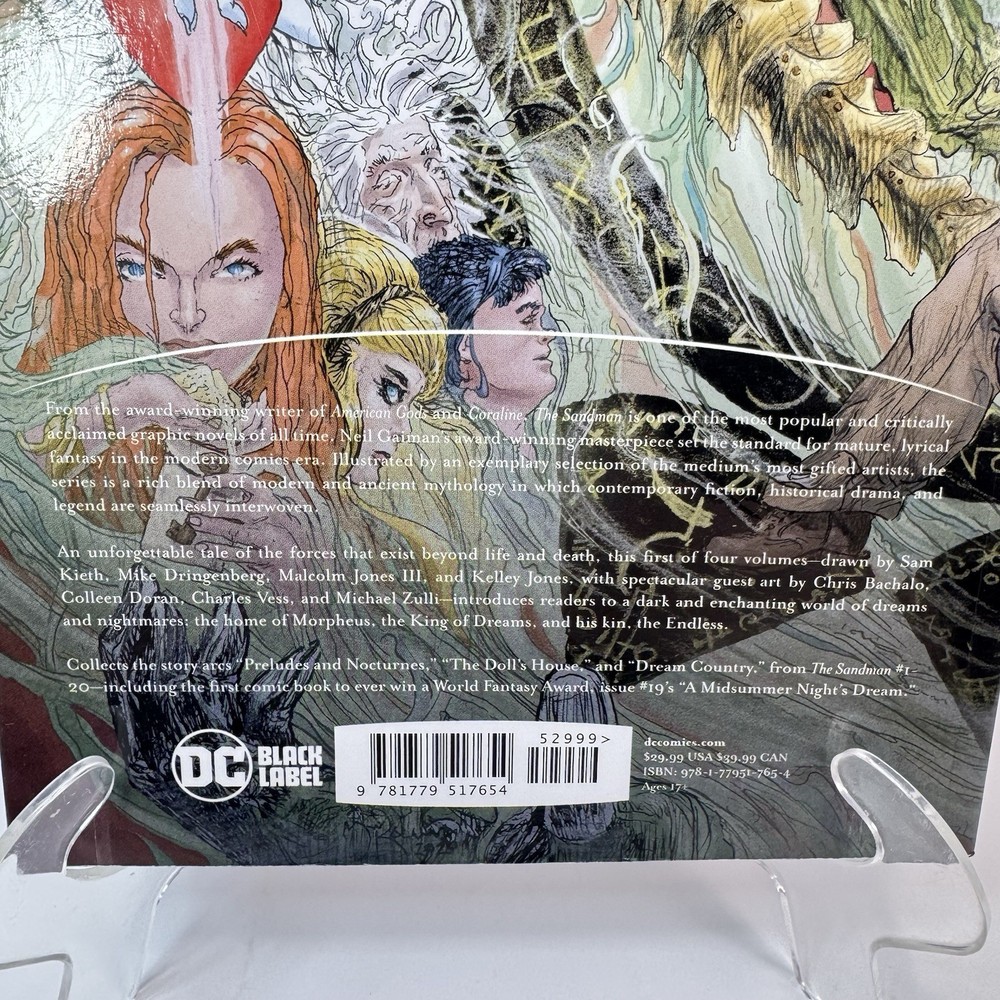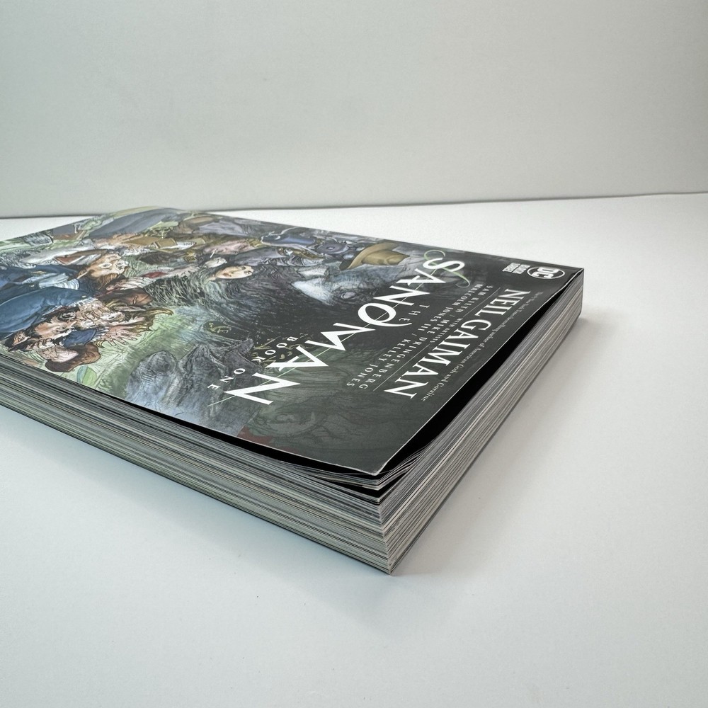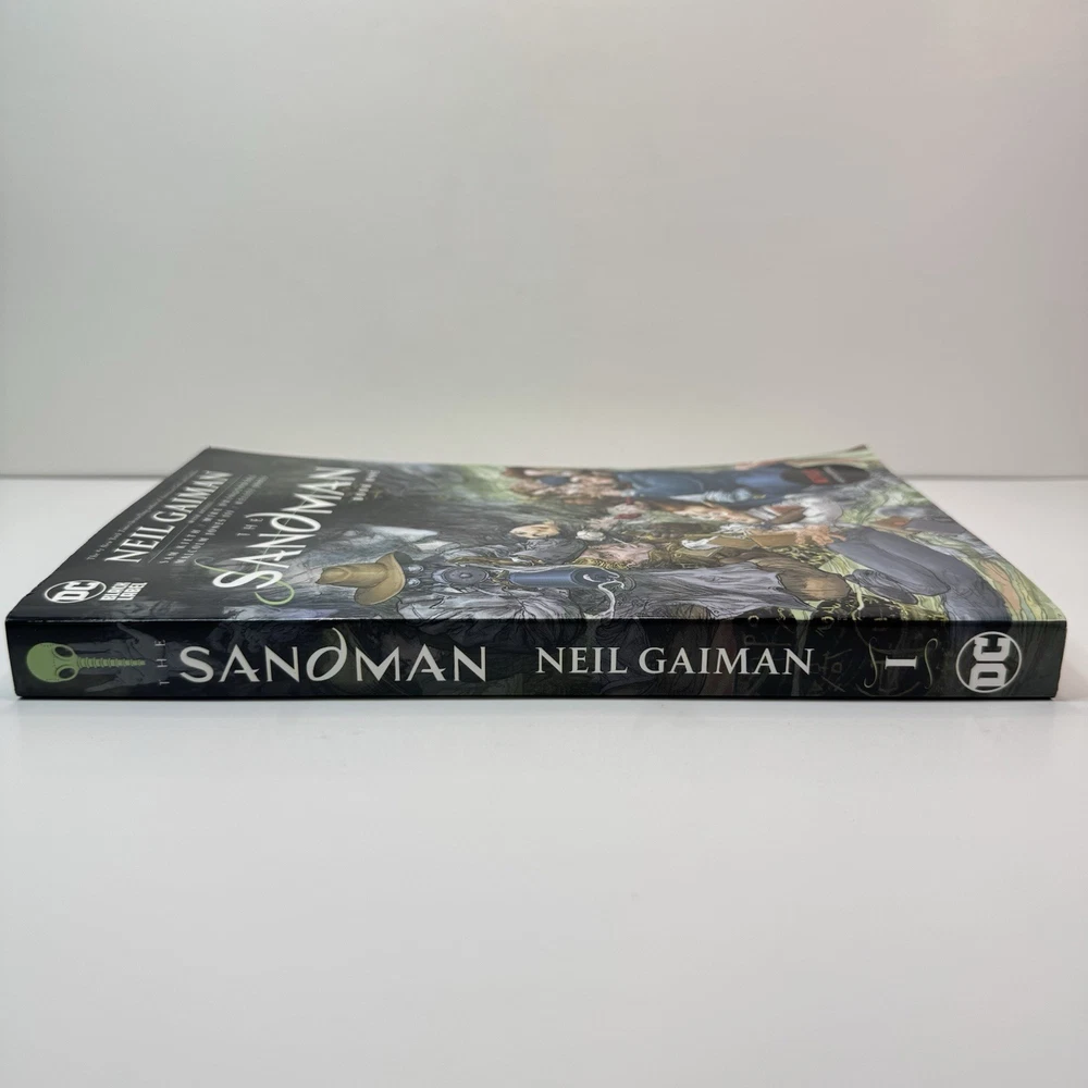 "The Sandman: The Deluxe Edition Book One" is a collectible hardcover comic book by Neil Gaiman, featuring a variety of characters such as Franklin, Ecstasy, Davy, and Batman. Published by DC Comics in 2021, the book belongs to the modern age era of US Comics and falls under the genres of superheroes and fantasy. The cover art is done by Dave Stewart and Michael Wm. Kaluta, adding to the appeal of this deluxe edition of the first book in the series. With a mix of writers and artists, this book is a must-have for fans of the Sandman universe. Very good condition.