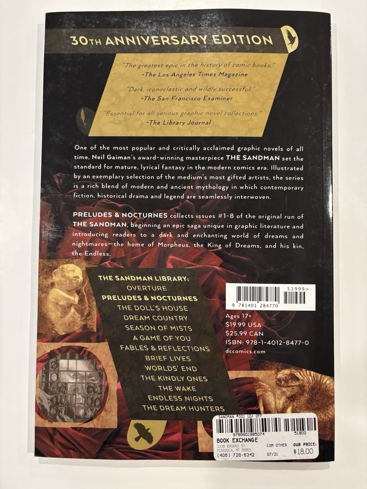 The Sandman Vol. 1: Preludes and Nocturnes is a 1993 English language comic book from the Copper Age of US Comics. Published by Vertigo Comics, this reprint features the character of Nocturnals in the series titled The Sandman: Preludes & Nocturnes. As a collectible item, this comic book is a must-have for fans of the series and comic book enthusiasts in general.