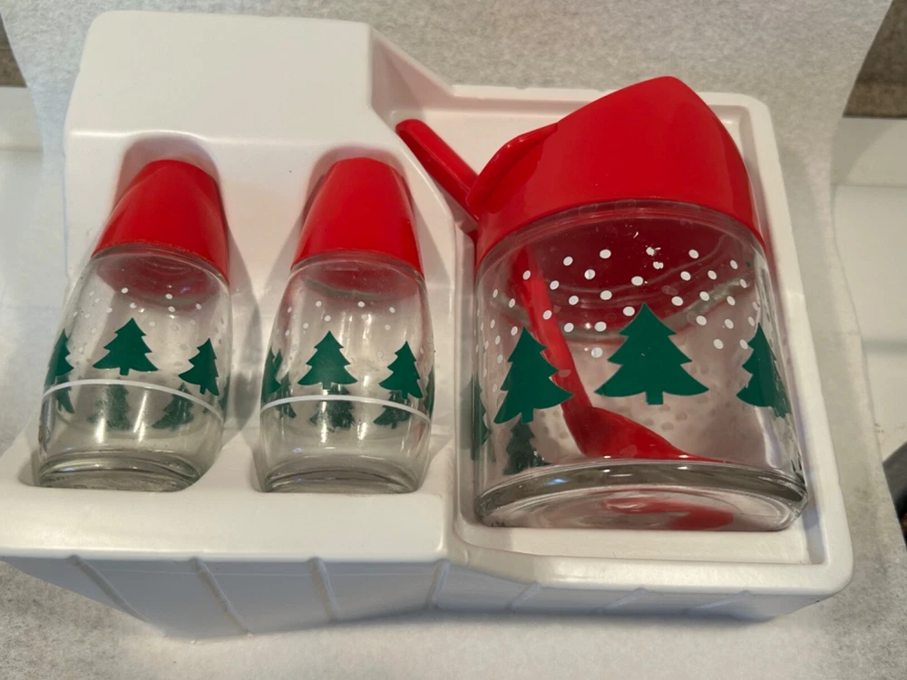 The Serving Ware By Gemco Christmas Sugar Bowl With Spoon Salt and Pepper Glass